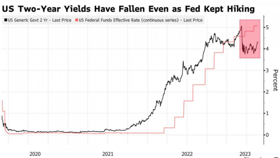 Евро обречен?ИнстаФорекс - Instaforex, 2 года назад Индекс менеджеров по закупкам еврозоны неожиданно упал. Его американский аналог неожиданно вырос в мае до 13-месячного максимума. Станет ли сюрпризом слом восходящего тренда по EUR/USD? В текущей ситуации удивляться ничему не приходится. На фоне сильной экономики продолжение цикла ужесточения денежно-кредитной политики ФРС в июле после паузы в июне выглядит вполне оправданным. А вот ЕЦБ в условиях замедления ВВП еврозоны может и не сделать то, что от него ожидают рынки. И это крайне неприятное известие для евро. Динамика деловой активности в США По мнению MUFG, основной причиной укрепления американского доллара против основных мировых валют в мае стал рост доходности казначейских облигаций США. Отступление страхов рецессии после сильного отчета по занятости за апрель, уход в тень беспокойства инвесторов по поводу банковского кризиса способствуют распродажам долговых обязательств. В результате ставки по ним растут. Одновременно тупик по вопросу потолка госдолга и потенциальный дефолт заставляют инвесторов требовать более высокой доходности по облигациям. Потенциал ее ралли выглядит нераскрытым, так как ставки по 2-х и 10-летним долгам находятся ниже установленной ФРС стоимости заимствований. Им есть куда расти, так что коррекция EUR/USD будет продолжаться. Если это коррекция. В условиях неожиданного замедления ВВП еврозоны и первого с сентября 2022 падения индекса экономических сюрпризов по валютному блоку ниже нулевой отметки и до слома восходящего тренда по основной валютной паре недалеко. Динамика ставок ФРС и долгового рынка США MUFG считает, что спасти евро по силам разве что Европейскому центробанку. Только если Кристин Лагард и ее коллеги поднимут ставку по депозитам еще на 25 б.п. в июне и подадут сигнал, что она может вырасти до 4%, EUR/USD отыграет часть потерь. В обратном случае пара еще долго будет искать почву под ногами. На мой взгляд, намеки ФРС на паузу в процессе ужесточения денежно-кредитной политики, содержащиеся в протоколе майской встречи, замедление апрельского индекса расходов на личное потребление и сохранение неопределенности по поводу потолка госдолга несколько охладят пыл поклонников доллара США. Это позволит основной валютной паре обрести дно вблизи поддержки на 1,076 и начать формировать диапазон консолидации. Впрочем, если по факту Федрезерв окажется большим «ястребом», чем в настоящее время предполагается, а инфляция в США не захочет замедляться, EUR/USD рискует упасть еще ниже. Особенно если в ближайшее время компромисс между республиканцами и демократами по лимиту заимствований будет найден. Технически формирование на дневном графике основной валютной пары паттерна Anti-Turtles намекает на истощение коррекционного движения к восходящему тренду. Правда, для его активации требуются штурмы сопротивлений на 1,0825 и 1,084. Только в случае успеха «быков» в этом мероприятии можно будет покупать EUR/USD. Пока же сохраняем акцент на продажи. Материал предоставлен компанией InstaForex - www.instaforex.com |