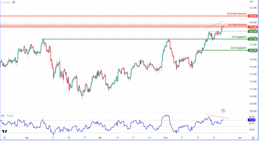 USD/JPY: возможен бычий разворот. Прогноз на 25 мая 2023 г.