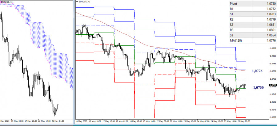 EUR/USD и GBP/USD 26 мая – технический анализ ситуацииИнстаФорекс - Instaforex, 2 года назад EUR/USD Старшие таймфреймы Вчера пара продолжила снижение, но дотянуться до поддержки 1,0693 так и не смогла. В результате выводы и ожидания, озвученные ранее, по-прежнему сохраняют свою актуальность. Для игроков на понижение важен ближайший рубеж 1,0693 (недельный среднесрочный тренд). Для игроков на повышение при отбое значение будет иметь пробой дневных и недельных сопротивлений в районе 1,0787 – 1,0796 – 1,0809. Н4 – Н1 Снижение в очередной раз приостановлено. На младших таймах в настоящий момент идёт развитие коррекционного подъёма. Пара закрепилась выше центрального Пивот уровня (1,0730). Далее возможно торможение в районе первого сопротивления классических Пивот уровней (1,0752), но ключевое значение в этом направлении имеет недельная долгосрочная тенденция (1,0776). Закрепление выше и разворот мувинга могут сломать действующий медвежий тренд и изменить расстановку сил. В случае завершения коррекции и при продолжении снижения поддержки внутри дня сегодня расположены на 1,0703 – 1,0681 – 1,0654 (классические Пивот уровни). *** GBP/USD Старшие таймфреймы Вчера пара исполнила снижение в район месячного среднесрочного тренда (1,2302). Нужно отметить, что на данном участке рынка собраны на небольшом расстоянии друг от друга сразу несколько уровней 1,2365 – 1,2344 – 1,2302 – 1,2240 и т.д., поэтому в любой момент можно ожидать формирование торможения, консолидации или отбоя. Н4 – Н1 На младших таймах основное преимущество в текущей ситуации принадлежит игрокам на понижение. Тем не менее, сейчас наблюдается развитие коррекционного подъёма, игроки на повышение преодолели центральный Пивот уровень (1,2337) и продолжают подъём. Их главным ориентиром служит недельная долгосрочная тенденция (1,2398). Закрепление выше способно изменить действующий баланс сил. Дополнительными ориентирами сегодня внутри дня могут служить классические Пивот уровни 1,2366 – 1,2416 – 1,2445 (сопротивления) и 1,2287 – 1,2258 – 1,2208 (поддержки). *** При техническом анализе ситуации использованы: старшие таймфреймы – Ichimoku Kinko Hyo (9.26.52) + уровни Фибо Киджун; младшие таймфреймы – Н1 – Pivot Points (классические) + Moving Avarage 120 (недельная долгосрочная тенденция). Материал предоставлен компанией InstaForex - www.instaforex.com |