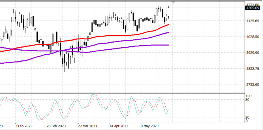 Рынок США. Госдолг США - есть сделка. Дефолта не будет с вероятностью 90%ИнстаФорекс - Instaforex, 2 года назад S&P500 Обзор 29.05 Рынок США. Госдолг - есть сделка. Главные индексы США закрыли неделю ростом: Доу -1.3%, NASDAQ + 2.3%, S&P500 +1.4%, S&P500 4207, диапазон 4160 - 4250. Рынок США закрыт в понедельник на День памяти. Фондовый рынок завершил неделю на оптимистичной ноте. Беспокойство по поводу потолка долга уменьшилось после сообщений о том, что соглашение о потолке долга может быть близко, хотя перед закрытием не было объявлено о таком соглашении. Кроме того, сегодня продолжился рост акций мегакапитализации, что повысило показатели индекса, а экономические данные указали на сохраняющуюся устойчивость экономики США. Уже в выходные стало известно, что Байден и Маккарти достигли соглашения по госдолгу - это большой позитив для рынков. Всё же окончательное решение должно произойти в среду, когда намечено голосование в Конгрессе по госдолгу. ETF Vanguard Mega Cap Growth ETF (MGK) вырос на 1,9%, а ETF Invesco S&P 500 Equal Weight (RSP) вырос на 0,8%. Индекс S&P 500, взвешенный по рыночной капитализации, вырос на 1,3% и закрылся выше 4200 - на самом высоком уровне с августа прошлого года. Акции полупроводников также продолжили рост в пятницу, что привело к росту PHLX Semiconductor Index (SOX) на 6,3%. Это произошло после того, как Marvell (MRVL 65,51, +16,04, +32,4%) сообщила о приятных доходах и прогнозах. За неделю индекс полупроводников PHLX прибавил 10,7%, в результате чего за месяц он вырос на 18,4%. Положительные отклики на другие корпоративные новости также поддержали рынок в целом. Ритейлеры Costco (COST 507,26, +20,71, +4,3%) и Gap (GPS 8,34, +0,92, +12,4%) зафиксировали хороший рост после того, как сообщили о более высоких, чем ожидалось, доходах и/или прогнозах, а также Workday (WDAY 216,07, +19,66, +10,0%), Pinduoduo (PDD 71,42, +11,40, +19,0%) и другие. Многие акции пошли вверх. Растущие опережали падающих с разницей лучше 2 к 1 на NYSE и чуть меньше 2 к 1 на Nasdaq. Большинство секторов S&P 500 зафиксировало рост, во главе с информационными технологиями (+2,7%) и дискреционными потребительскими товарами (+2,4%). Энергетический сектор (-0,4%) показал самые слабые результаты. Примечательно, что это ралли не было остановлено растущими ожиданиями повышения ставки на 25 базисных пунктов на июньском заседании FOMC. Согласно CME FedWatch Tool, вероятность повышения ставки на 25 базисных пунктов в июне составляет 66,5% по сравнению с 51,7% вчера и 13,7% месяц назад. Это последовало за сегодняшними утренними данными, которые показали сохранение силы экономики, что помогло развеять опасения по поводу жесткой посадки. Личные доходы выросли на 0,4% по сравнению с предыдущим месяцем в апреле, в то время как личные расходы выросли на 0,8% в номинальном выражении и 0,5% в реальном выражении. Инфляция PCE подскочила на 0,4%, оставив ее на 4,4% в годовом исчислении по сравнению с 4,2% в марте, в то время как базовая инфляция CPE также увеличилась на 0,4% по сравнению с предыдущим месяцем, в результате чего она выросла на 4,7% в годовом исчислении по сравнению с 4,6% в марте. Из других новостей, заказы на капитальные товары, не относящиеся к обороне, за исключением самолетов - косвенный показатель расходов бизнеса - в апреле подскочили на 1,4% по сравнению с предыдущим месяцем. Доходность 2-летних облигаций выросла на семь базисных пунктов до 4,56%, а доходность 10-летних нот упала на один базисный пункт до 3,80%.