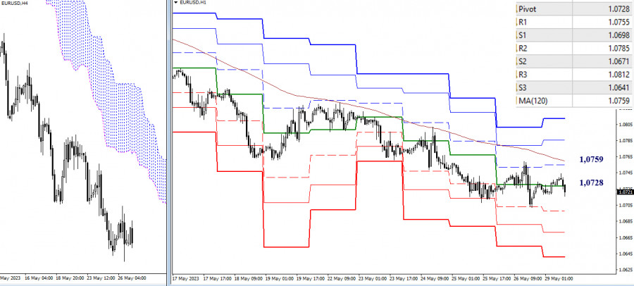 EUR/USD и GBP/USD 29 мая – технический анализ ситуацииИнстаФорекс - Instaforex, 2 года назад EUR/USD Старшие таймфреймы На прошлой неделе шло развитие дневного медвежьего тренда. Закрепление под облаком Ишимоку привело к формированию дневной понижательной цели (1,0557 – 1,0497). Кроме этого наблюдалось развитие недельной нисходящей коррекции. В итоге игроки на понижение поставили задачу по тестированию на прочность поддержек недельного золотого креста и его ликвидацию. Заключительный уровень креста сегодня расположен на рубеже 1,0692. Если игроки на понижение не сумеют реализовать свои планы, а инициатива перейдёт на сторону соперника, то ближайшие задачи игроков на повышение будут заключаться в обретении поддержек недельного среднесрочного тренда (1,0770) и дневного краткосрока (1,0788), а также в возврате в дневное облако (1,0796). Н4 – Н1 Основное преимущество младших таймов сейчас сохраняется на стороне игроков на понижение. Пара работает под ключевыми уровнями 1,0728 (центральный Пивот уровень) – 1,0759 (недельная долгосрочная тенденция). Данные уровни отвечают за баланс сил. При продолжении снижения сегодня внутри дня ориентиры можно отметить на 1,0698 – 1,0671 – 1,0641 (классические Пивот уровни). При пробое ключевых уровней (1,0728-59) и закреплении выше преимущество сместится на сторону игроков на повышение, в качестве ориентиров можно будет рассмотреть 1,0785 – 1,0812 (классические Пивот уровни). *** GBP/USD Старшие таймфреймы На прошлой неделе пара приступила к тестированию месячного среднесрочного тренда (1,2302), а также попала в область притяжения недельного уровня (1,2344). В качестве следующих понижательных ориентиров можно отметить 1,2240 (недельный среднесрочный тренд) и 1,2173 (нижняя граница дневного облака). Если активность перейдёт на сторону игроков на повышение, то для них значение могут иметь сопротивления дневного креста Ишимоку (1,2408 – 1,2449 – 1,2492 – 1,2536), усиленные недельным краткосрочным трендом (1,2476). Н4 – Н1 На младших таймах пара работает в зоне коррекции, но при этом основное преимущество в настоящий момент находится на стороне игроков на понижение. Ориентирами для снижения внутри дня служат поддержки классических Пивот уровней (1,2305 – 1,2265 – 1,2221). Пробой и разворот недельной долгосрочной тенденции (1,2378) может изменить действующий баланс сил. Ориентирами для развития дальнейшего подъёма станут сопротивления классических Пивот уровней (1,2389 – 1,2433 – 1,2473). *** При техническом анализе ситуации использованы: старшие таймфреймы – Ichimoku Kinko Hyo (9.26.52) + уровни Фибо Киджун; младшие таймфреймы – Н1 – Pivot Points (классические) + Moving Avarage 120 (недельная долгосрочная тенденция). Материал предоставлен компанией InstaForex - www.instaforex.com |