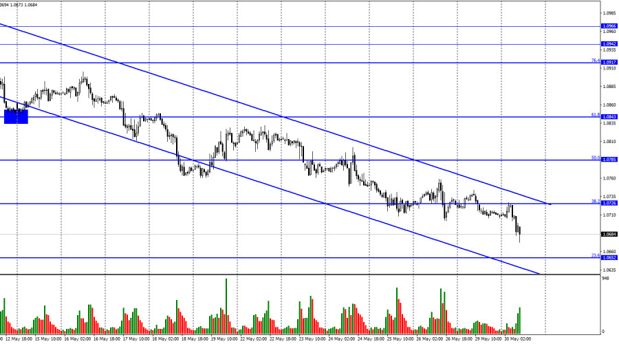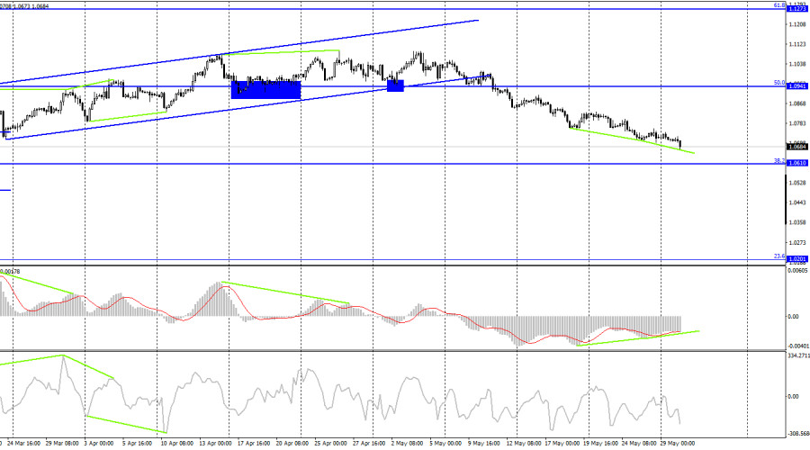EUR/USD. 30 мая. Европейская валюта не может найти опоруИнстаФорекс - Instaforex, 2 года назад Добрый день, уважаемые трейдеры! Пара EUR/USD во вторник продолжает процесс падения внутри нисходящего трендового коридора, который по-прежнему характеризует настроение трейдеров как «медвежье». Падение продолжается в направлении уровня коррекции 23,6% – 1,0652. Отбой курса пары от этого уровня сработает в пользу европейской валюты и некоторого роста в направлении уровня Фибо 38,2% – 1,0726. Закрытие котировок под уровнем 1,0652 повысит шансы на продолжение падения в направлении следующего уровня 1,0609. Информационный фон ничем не порадовал трейдеров в понедельник. Единственной новостью дня стало сообщение о договоренности между республиканцами и демократами по лимиту государственного долга, который необходимо успеть поднять до 1 июня, во избежание дефолта. Вчера в США был праздничный день, активность трейдеров была на нуле. Сегодняшний рост доллара может быть связан с новостью о госдолге. По крайней мере других сообщений не было ни в понедельник, ни во вторник, таким образом, выбор невелик. Разрешение проблемы с госдолгом снимает с доллара некоторые ограничения. Несмотря на то что в последний месяц валюта активно растет, сейчас она вполне может ускорить свой рост. Многие аналитики неоднократно утверждали, что потенциальный дефолт в американской экономике оказывает негативное влияние на курс доллара. Сейчас этот фактор больше не влияет на настроение трейдеров. Безусловно, еще должен поставить свою подпись под соглашением весь Конгресс США, но это уже гораздо меньшая проблема, чем та которая была еще неделю назад. Так как пара даже не пытается покинуть нисходящий коридор, я не вижу никаких оснований для покупок евровалюты в данное время. Информационный фон для американской валюты остается неплохим и улучшается с течением времени. Евровалюте крыть пока нечем. На этой неделе выйдет сразу несколько важных отчетов в Евросоюзе и США, возможно, они помогут евро немного подрасти. На 4-часовом графике пара продолжает процесс падения в направлении коррекционного уровня 38,2% – 1,0610. Новая «бычья» дивергенция у индикатора MACD позволяет ожидать небольшой рост, но может в любой момент отмениться, как и предыдущая. Отбой курса пары от уровня 1,0610 сработает в пользу валюты ЕС и некоторого роста. Закрытие под 1,0610 повысит вероятность продолжения падения в направлении следующего уровня Фибо 23,6% – 1,0201. Отчет Commitments of Traders (COT):