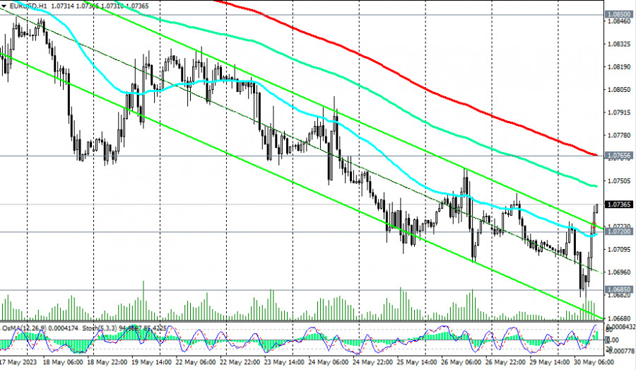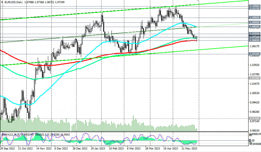 EUR/USD: сценарии динамики на 30.05.2023ИнстаФорекс - Instaforex, 2 года назад На момент публикации данной статьи EUR/USD торговалась вблизи отметки 1.0735, двигаясь в зоне долгосрочного (ниже ключевых уровней сопротивления 1.0960 (ЕМА144 на недельном графике), 1.1070 (ЕМА200 на недельном графике)) и краткосрочного (ниже уровней сопротивления 1.0850 (ЕМА200 на 4-часовом графике), 1.0765 (ЕМА200 на 1-часовом графике) рынков. Цена нашла поддержку на ключевых уровнях поддержки 1.0685 (ЕМА200 на дневном графике), 1.0700. Говорить об окончании среднесрочного нисходящего тренда пока преждевременно. Для этого цене необходимо пробиться хотя бы в зону выше уровней сопротивления 1.0765, 1.0800. Сигналом для открытия и наращивания коротких позиций может стать пробой сегодняшнего минимума 1.0672 с целями на уровнях поддержки 1.0620, 1.0600. Пробой локального уровня поддержки 1.0520 окончательно вернет EUR/USD в зону глобального медвежьего рынка. В альтернативном сценарии EUR/USD возобновит рост. Самым первым сигналом для входа в длинные позиции в этом случае может стать пробой уровня сопротивления 1.0765. В случае закрепления в этой зоне целью роста пары становятся уровни сопротивления 1.0850, 1.0900. Для окончательного прорыва в зону долгосрочного бычьего рынка паре необходим подтвержденный пробой уровней сопротивления 1.1070, 1.1095. При дальнейшем росте целью становятся уровень сопротивления 1.1600 (ЕМА200, ЕМА144 на месячном графике), отделяющий глобальный бычий тренд от медвежьего. Уровни поддержки: 1.0720, 1.0700, 1.0685, 1.0600, 1.0520 Уровни сопротивления: 1.0765, 1.0800, 1.0850, 1.0900, 1.0960, 1.1000, 1.1070, 1.1095 *) об особенностях торговли парой см. в EUR/USD: валютная пара (характеристики, рекомендации) **) о важных событиях недели см. в Важнейшие экономические события недели 29.05.2023 – 04.06.2023 ***) открыть торговый счет в Instaforex -