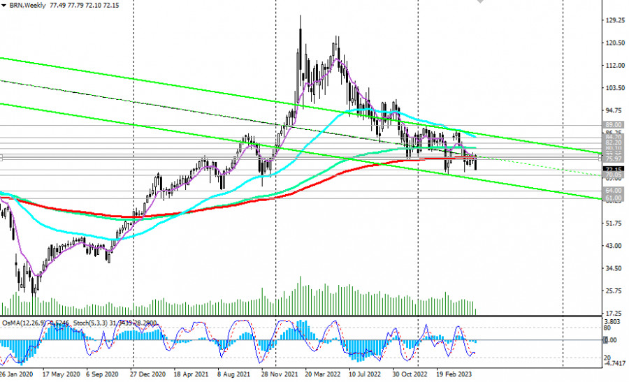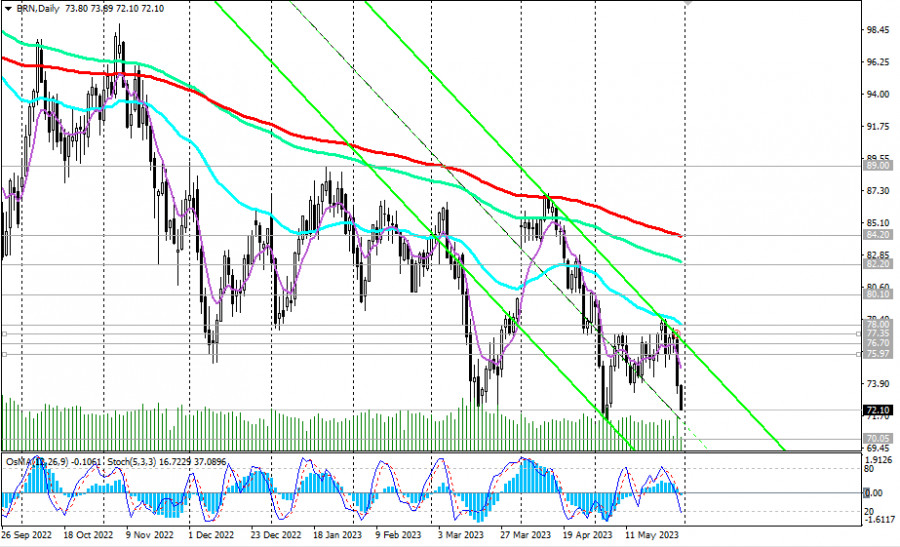 Brent: сценарии динамики на 31.05.2023ИнстаФорекс - Instaforex, 2 года назад Как мы отметили в нашем сегодняшнем «Фундаментальном анализе», на нефтяном рынке наблюдается нисходящая динамика. На прошлой неделе цена на нефть марки Brent предприняла попытку прорыва в зону долгосрочного медвежьего рынка, протестировав сопротивление на уровнях 76.70 (ЕМА200 на недельном графике), 78.00 (локальный уровень сопротивления). Тем не менее, бычий импульс быстро угас, и котировки нефти на этой неделе вновь поползли вниз. С технической точки зрения, цена нефти марки Brent перешла в зону долгосрочного медвежьего рынка, пробив ключевой уровень поддержки 76.70, и сегодня продолжает развивать нисходящую динамику в направлении ключевых уровней поддержки 64.00 (ЕМА144 на месячном графике), 61.00 (ЕМА200 на месячном графике), отделяющих глобальный бычий рынок нефти от медвежьего. Если ситуация с госдолгом США все же разрешится, то пробой ближайшего уровня сопротивления 74.00 станет первым сигналом для открытия длинных позиций с ближайшей целью на уровнях сопротивления 76.00 (ЕМА200 на 1-часовом графике), 76.70, 77.35 (ЕМА200 на 4-часовом графике), 78.00 (ЕМА50 на дневном графике). Пробой ключевых уровней сопротивления 84.00, 84.20 (ЕМА200 на дневном графике) вернет цену в зону долгосрочного бычьего рынка. В альтернативном сценарии пробой локального уровня поддержки 71.32 (минимум месяца) станет сигналом для наращивания коротких позиций с целями вблизи уровней поддержки 65.00, 64.00, 63.00, 62.00, 61.00. Уровни поддержки: 70.00, 65.00, 64.00, 63.00, 62.00, 61.00 Уровни сопротивления: 74.00, 76.00, 76.70, 77.35, 78.00, 80.10, 82.20, 84.00, 84.20, 89.00 *) копирование сигналов в Instaforex - **) ПАММ-система в Instaforex - ***) открыть торговый счет в Instaforex -