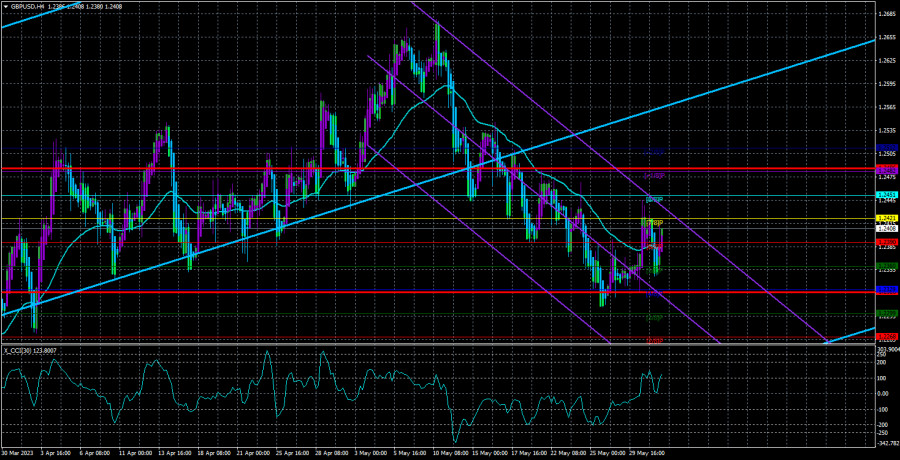 Обзор пары GBP/USD. 1 июня. Лоретта Мейстер преподнесла подарок доллару.ИнстаФорекс - Instaforex, 2 года назад Валютная пара GBP/USD в среду торговалась с повышением большую часть дня. Техническая картина последних нескольких дней по фунту отличается от аналогичной по евро. Фунт во вторник закрепился выше мувинга, в среду ушел обратно ниже этой линии, но к концу дня опять закрепился выше него. Таким образом, по фунту сейчас действительно возможно либо восстановление восходящего тренда, либо восходящая коррекция, чего по евровалюте мы не наблюдаем. Мы уже не раз говорили, что фунт стерлингов показывает большую резистентность против доллара, нежели евровалюта. Падает он скромнее, а растет охотнее. Таким образом, фунт может показать некоторый рост в то же время, как евро будет продолжать падение. С фундаментальной точки зрения, объяснить такую раскорреляцию достаточно сложно. Ведь в первые три дня текущей недели новости поступали либо из США, либо их не было вовсе. Следовательно, обе пары должны были показать примерно одинаковые движения. Тем не менее, фунт во второй половине среды вновь сумел найти основания для достаточно сильного роста, который непонятно чем был спровоцирован. Евро тоже рос в это время, но гораздо слабее. Движение вверх началось еще до публикации единственного более или менее важного отчета по открытым вакансиям в США за апрель, поэтому макроэкономическая статистика совершенно точно не имеет никакого отношения к этому. Публикации по инфляции и безработице в Германии должны были повлиять в большей степени на евровалюту, но в первой половине дня пары двигались как раз синхронно. Таким образом, мы считаем, что обе пары должны продолжать падение, но фунт будет делать это менее охотно, чем евро. Более сильный рост фунта может объясняться сейчас заходом индикатора CCI в область перекупленности неделю назад. ФРС может повысить ключевую ставку в июне.Глава ФРБ Кливленда Лоретта Мейстер в среду ночью заявила, что нет никаких убедительных причин для паузы. Иными словами, госпожа Мейстер поддерживает новое ужесточение монетарной политики на следующем заседании в июне. Напомню, что консенсус-прогноз заключается сейчас в завершении цикла ужесточения ФедРезервом, а еще одно резервное повышение ставки возможно чуть позже, если инфляция начнет снижаться неудовлетворительными темпами. Тем не менее, госпожа Мейстер(а ранее и некоторые другие представители ФРС) заявила четко и прямо: ставку нужно повысить еще раз, так как инфляция все еще слишком высока и снижается медленно. «Я бы не стала брать паузу в то время, когда очевидно всем, что следует продолжать ужесточение», – заявила Мейстер. Вероятность повышения ключевой ставки в июне тут же подскочила до 54,9%... Естественно, что при текущих обстоятельствах тут же прибавила и американская валюта. Ведь рынок откровенно не рассчитывал увидеть в июне еще одно повышение ставки. Мало, кто верил, что заявления Джеймса Булларда могут сбыться, а он, напомним, поддерживает повышение ставки до 5,75%. Если в июне она возрастет до 5,5%, то до «таргета Булларда» останется всего лишь одно повышение на 0,25%. Таким образом, до 14 июня доллар может продолжать оставаться «на коне». Напомним, что от ЕЦБ и Банка Англии ждут еще максимум двух повышений по 0,25% и, если ФРС повысит в 2023 году ставку до 5,75%, это будет означать,