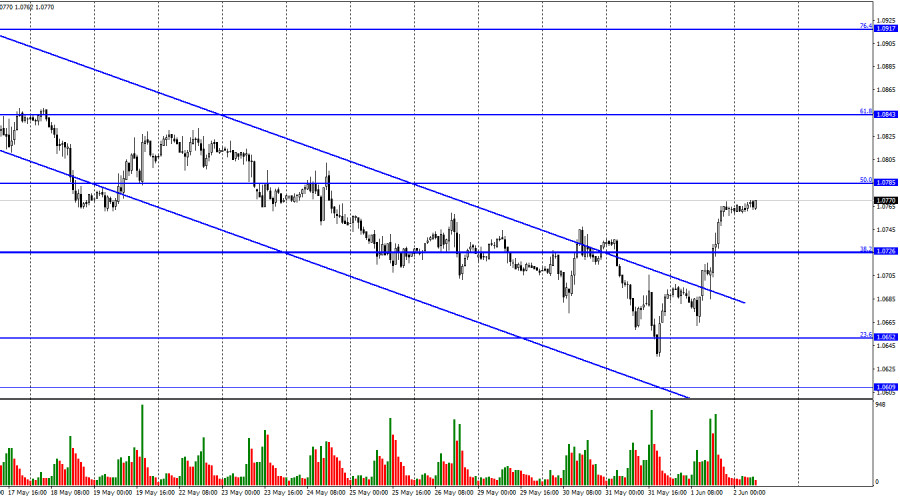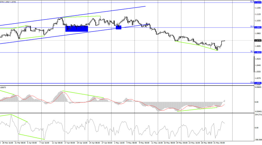 EUR/USD. 2 июня. Палата представителей и Сенат проголосовали за отмену лимита госдолгаИнстаФорекс - Instaforex, 2 года назад Добрый день, уважаемые трейдеры! Пара EUR/USD в четверг выполнила разворот в пользу европейской валюты и закрепление над уровнем коррекции 38,2% – 1,0726. Таким образом, процесс роста может быть продолжен в направлении следующего уровня Фибо 50,0% – 1,0785. Отбой курса пары от уровня 1,0785 сработает в пользу валюты США и некоторого падения в направлении уровня 1,0726. Закрытие над 1,0785 повысит вероятность дальнейшего роста в направлении следующего уровня коррекции 61,8% – 1,0843. Вчерашний день был переполнен различными важными отчетами и событиями, которые многие аналитики уже осветили. Я бы хотел обратить внимание читателей на еще одно немаловажное событие – отмену лимита госдолга США до 2025 года. В четверг обе палаты Конгресса США проголосовали «за» отмену действия лимита. Напомню, что Америка впервые в своей истории могла столкнуться с дефолтом, если бы лимит не был поднят или отменен, так как в этом случае Казначейство не смогло бы выполнять свои обязанности перед кредиторами и осуществлять социальные выплаты. Однако подобная ситуация возникала в Америке в последние годы довольно часто, каждый раз решение находилось. Проще говоря, Конгресс США всегда повышал доступный «потолок». Так случилось и на этот раз. 314 из 435 членов Палаты представителей одобрили отмену лимита до 2025 года, то есть необходимое большинство. Голосование в Сенате, который контролируется демократами, прошло еще проще: 63 сенатора из 100 проголосовали «за». И в нижней, и в верхней палате многие республиканцы поддержали законопроект, поэтому можно считать, что он был принят обеими партиями. Теперь закон должен подписать Джо Байден, после чего он вступит в силу. На мой взгляд, вчерашнее падение доллара было связано с этим событием, так как обе пара росли одновременно и одинаково. На 4-часовом графике пара выполнила разворот в пользу европейца, не дойдя до уровня коррекции 38,2% буквально несколько пунктов. Вторая «бычья» дивергенция позволила выполнить разворот, а процесс роста теперь может быть продолжен в направлении уровня Фибо 50,0% – 1,0941. Закрепление курса пары под 1,0610 сработает в пользу доллара США и возобновления падения в направлении уровня Фибо 23,6% - 1,0201. Отчет Commitments of Traders (COT):