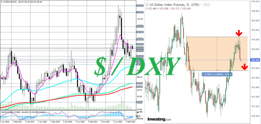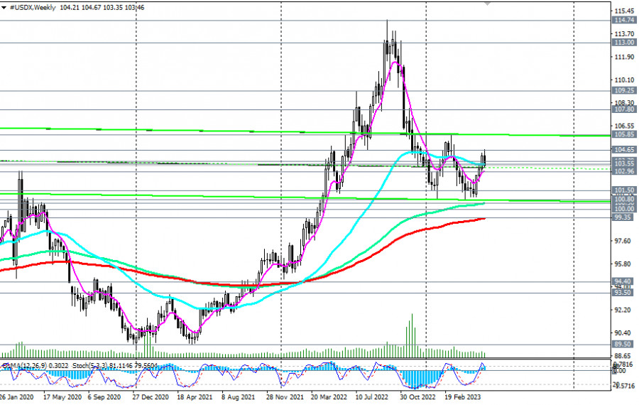 Доллар: накануне NFPИнстаФорекс - Instaforex, 2 года назад Доллар резко снизился в начале вчерашней американской торговой сессии после публикации отчетов ADP и Минтруда США со свежими данными с американского рынка труда и ISM с данными о состоянии производственного сектора. Если отчеты ADP и Минтруда США оказались достаточно оптимистичными, подтвердившими силу и стабильность американского рынка труда (число занятых в частном секторе американской экономики хоть и скорректировалось с 291,0 тыс. до 278,0 тыс., а количество первичных обращений за пособием по безработице за прошлую неделю достигло 232,0 тыс., превзойдя предыдущий показатель в 230,0 тыс., это все еще сильные показатели), то отчет от Института управления снабжением (ISM) расстроил покупателей доллара. Согласно представленным ISM данным, индекс деловой активности в производственном секторе PMI в мае снизился до 46,9 (с 47,1 в апреле при прогнозе 47,0), индекс новых заказов снизился до 42,6 (с 45,7 месяцем ранее при прогнозе 44,9). Если рынок труда США остаётся достаточно сильным, что дает возможность ФРС продолжать активно бороться с высокой инфляцией и далее повышая процентную ставку, то представленный ISM отчет указывает на охлаждение американской экономики, в том числе по причине высокой стоимости заимствований в США для развития бизнеса. Отметим также, что вчерашний отчет ISM также содержал индекс постепенного разгона инфляции в производственной сфере, который указал на более сильное замедление темпов производственной инфляции: показатель оказался со значением 44,2 в мае (против 53,2 в апреле при прогнозе 52,0). Покупатели доллара не торопятся пока наращивать длинные позиции в конце недели. Давление на его котировки также оказывает одобрение законопроекта о лимите государственного долга США Сенатом (за этот законопроект о лимите госдолга нижняя палата Конгресса проголосовала днем ранее). Теперь ожидается, что данный вопрос будет окончательно закрыт до 5 июня подписью президентом США Байденом. Кроме того, инвесторы предпочитают закрыть часть имеющихся длинных позиций по доллару накануне публикации официального отчёта по американскому рынку труда за май. Здесь экономисты ожидают замедление динамики создания новых рабочих мест вне сельскохозяйственного сектора с 253,0 тыс. до 190,0 тыс., а темпов роста средней почасовой заработной платы с 0,5% до 0,3%. В то же время, хотя безработица в США остается на уровне исторических и допандемийных минимумов, ее относительный рост (на +0,1% до 3,5%) также может негативно повлиять на настроения участников рынка, ожидающих дальнейших действий от ФРС на пути ужесточения монетарной политики. Напомним, что публикация отчета Минтруда США с данными за май запланирована на 12:30 GMT (подробнее в Важнейшие экономические события недели 29.05.2023 – 04.06.2023). В это время ожидается резкий рост волатильности на финансовом рынке и, прежде всего, в котировках доллара. Вероятно, наиболее консервативные инвесторы предпочтут в это время остаться вне рынка, и это тоже торговая позиция. С технической точки зрения индекс DXY (CFD #USDX в терминале МТ4) не смог (возможно – пока) прорваться в зону среднесрочного бычьего рынка, выше ключевого уровня сопротивления 103.80 (ЕМА200 на дневном графике). Сегодня цена пробила важный краткосрочный уровень поддержки 103.79 (ЕМА200 на 1-часовом графике), и DXY снижается в сторону уров