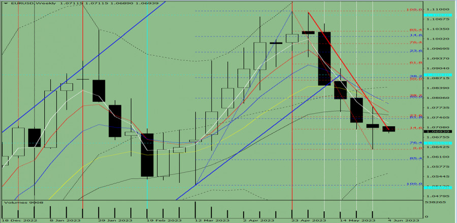Технический анализ на неделю, с 5 по 10 июня, валютная пара EUR/USDИнстаФорекс - Instaforex, 2 года назад Трендовый анализ (рис. 1). На этой неделе рынок от уровня 1.0707 (закрытие последней недельной свечи) может продолжить движение вниз с целью 1.0656 – исторический уровень сопротивления (голубая пунктирная линия). По достижении этого уровня, возможно, начнётся работа вверх с целью 1.0743 – откатный уровень 23.6% (красная пунктирная линия). Рис. 1 (недельный график). Комплексный анализ: - индикаторный анализ – вниз; Вывод по комплексному анализу: нисходящее движение. Общий итог расчёта свечи валютной пары EUR/USD по недельному графику: цена на неделе, вероятней всего, будет иметь нисходящую тенденцию с отсутствием первой верхней тени у недельной чёрной свечи (понедельник – вниз) и наличием второй нижней тени (пятница – вверх). На этой неделе рынок от уровня 1.0707 (закрытие последней недельной свечи) может продолжить движение вниз с целью 1.0656 – исторический уровень сопротивления (голубая пунктирная линия). По достижении этого уровня, возможно, начнётся работа вверх с целью 1.0743 – откатный уровень 23.6% (красная пунктирная линия). Альтернативный сценарий: пара от уровня 1.0707 (закрытие последней недельной свечи) может продолжить движение вниз с целью 1.0635 – нижний фрактал (красная пунктирная линия). По достижении этого уровня возможна работа вверх с целью 1.0743 – откатный уровень 23.6% (красная пунктирная линия). Материал предоставлен компанией InstaForex - www.instaforex.com |