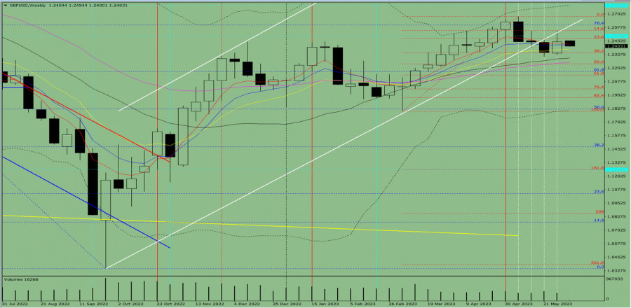 Технический анализ на неделю, с 5 по 10 июня, валютная пара GBP/USDИнстаФорекс - Instaforex, 2 года назад Трендовый анализ. На этой неделе цена от уровня 1.2445 (закрытие последней недельной свечи) может начать движение вниз с целью 1.2239 – откатный уровень 50% (красная пунктирная линия). При тестировании этого уровня возможно движение цены вверх с целью 1.2678 – верхний фрактал (красная пунктирная линия). Рис. 1 (недельный график). Комплексный анализ: - индикаторный анализ – вниз; Вывод по комплексному анализу: нисходящее движение. Общий итог расчёта свечи валютной пары GBP/USD по недельному графику: цена на неделе, вероятней всего, будет иметь нисходящую тенденцию с отсутствием первой верхней тени у недельной чёрной свечи (понедельник – вниз) и наличием второй нижней тени (пятница – вверх). Цена от уровня 1.2445 (закрытие последней недельной свечи) может начать движение вниз с целью 1.2239 – откатный уровень 50% (красная пунктирная линия). При тестировании этого уровня возможно движение вверх с целью 1.2678 – верхний фрактал (красная пунктирная линия). Альтернативный сценарий: цена от уровня 1.2445 (закрытие последней недельной свечи) может начать движение вниз с целью 1.2135 – откатный уровень 61.8%(красная пунктирная линия). При тестировании этого уровня возможно движение вверх с целью 1.2599 – откатный уровень 76.4% (синяя пунктирная линия). Материал предоставлен компанией InstaForex - www.instaforex.com |