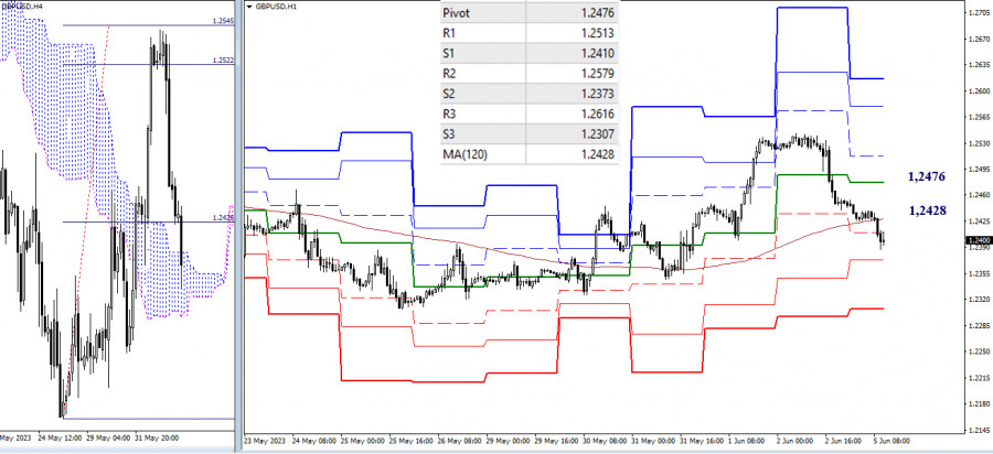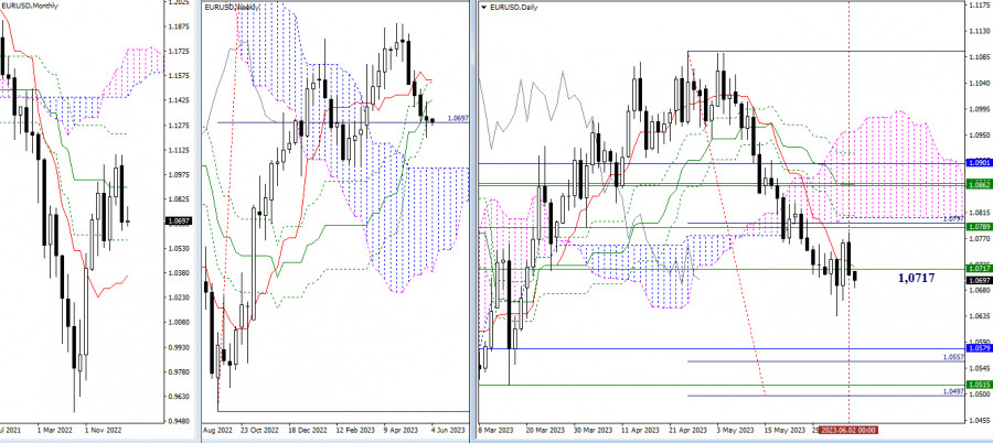 EUR/USD и GBP/USD 5 июня – технический анализ ситуацииИнстаФорекс - Instaforex, 2 года назад EUR/USD Старшие таймфреймы Прошлую неделю пара закрыла свечой неопределённости, вернувшись в район притяжения и влияния дневного краткосрочного тренда (1,0719) и заключительного уровня недельного золотого креста Ишимоку, который сейчас находится на 1,0717. Закрепление под данными уровнями и выход их зоны дневной восходящей коррекции (1,0636) вернёт на рынок нисходящий тренд и медвежьи ориентиры. Ближайшие перспективы для усиления медвежьих настроений в сложившейся ситуации можно отметить в зоне поддержек 1,0579 – 1,0557 – 1,0515 – 1,0497 (месячный Фибо Киджун + недельный Сенкоу Спан Б + понижательная цель на пробой дневного облака). Если на рынок вернутся игроки на повышение, то внимание будет направлено на повышательные ориентиры, которые продолжают располагаться в районе дневного облака. Бычьими ориентирами сейчас служат сопротивления дневного (1,0810 – 1,0864 – 1,0918) и недельного (1,0789 – 1,0862 – 1,0866) крестов Ишимоку, а также дневное облако (1,0806 – 1,0956) и месячный среднесрочный тренд (1,0901). Н4 – Н1 На младших таймфреймах в настоящий момент основным преимуществом владеют игроки на повышение. Они закрепились выше ключевых уровней, превратив их в поддержки на случай развития коррекции. Ключевые уровни расположены сейчас на 1,0731-18 (центральный Пивот уровень + недельная долгосрочная тенденция). При продолжении подъёма сегодня внутри дня в работу могут вступить сопротивления классических Пивот уровней R2 (1,0806) и R3 (1,0831). *** GBP/USD Старшие таймфреймы На прошлой неделе игроки на повышение протестировали важные рубежи, такие как недельный краткосрочный тренд (1,2492) и заключительные уровни дневного мёртвого креста Ишимоку (1,2492 – 1,2536), но закрыть неделю выше не смогли. С открытием новой рабочей недели данные уровни сохранили своё расположение и по-прежнему являются ближайшими значимыми ориентирами на пути появления новых бычьих перспектив. Для игроков на понижение расположение наиболее важных уровней поддержки данного участка тоже пока не изменилось. Зона поддержек достаточно широкая и включает в себя уровни недельного креста Ишимоку (1,2343 – 1,2240 – 1,2137) и месячный среднесрочный тренд (1,2302). Н4 – Н1 На младших таймах пара протестировала на прочность недельную долгосрочную тенденцию (1,2428) и закрепилась ниже. Следующими ориентирами для снижения сейчас являются поддержки классических Пивот уровней S2 (1,2373) и S3 (1,2307). Закрепление выше ключевых уровней 1,2428 – 1,2476 (недельной долгосрочной тенденции + центрального Пивот уровня) вернёт на рынок игроков на повышение. Следующими повышательными ориентирами внутри дня станут сопротивления классических Пивот уровней (1,2513 – 1,2579 – 1,2616). *** При техническом анализе ситуации использованы: старшие таймфреймы – Ichimoku Kinko Hyo (9.26.52) + уровни Фибо Киджун; младшие таймфреймы – Н1 – Pivot Points (классические) + Moving Avarage 120 (недельная долгосрочная тенденция). Материал предоставлен компанией InstaForex - www.instaforex.com |