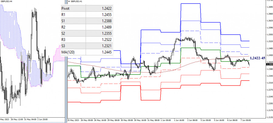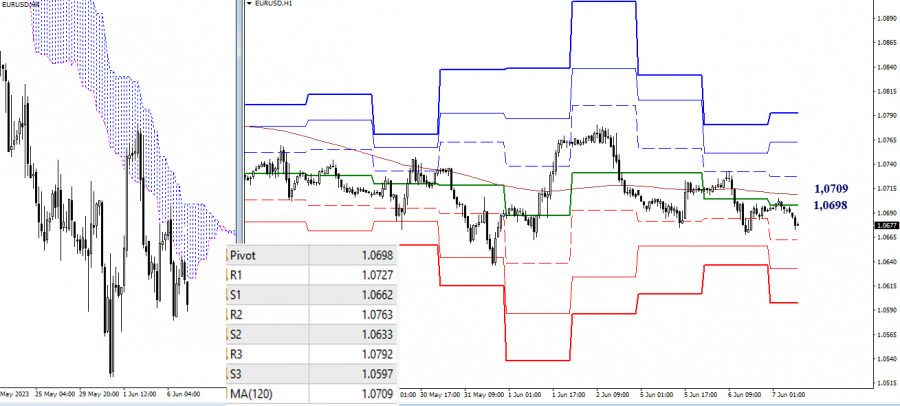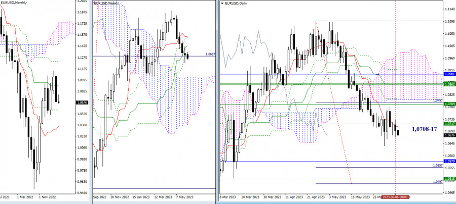 EUR/USD и GBP/USD 7 июня – технический анализ ситуацииИнстаФорекс - Instaforex, 2 года назад EUR/USD Старшие таймфреймы Прошлые сутки пара провела в районе притяжения и влияния важных рубежей 1,0708 – 1,0717 (дневной краткосрочный тренд + заключительный уровень недельного креста Ишимоку). Сегодня продолжается работа чуть ниже данных уровней. Если снижение получит развитие, то внимание игроков на понижение будет направлено на тестирование зоны поддержек 1,0579 – 1,0557 – 1,0515 – 1,0497 (месячный Фибо Киджун + недельный Сенкоу Спан Б + понижательная цель на пробой дневного облака). В то же время при смене настроений и новой активности игроков на повышение рынок вновь сосредоточится на сопротивлениях, ближайшие из которых сегодня по-прежнему находятся в районе 1,0789 – 1,0806 (недельный среднесрочный тренд + дневной Сенкоу Спан Б). Н4 – Н1 Ключевые уровни младших таймов 1,0698 – 1,0709 (центральный Пивот уровень + недельная долгосрочная тенденция) сегодня практически совпадают с основными уровнями притяжения старших таймфреймов (1,0708 – 1,0717), поэтому закрепление выше может существенно усилить игроков на повышение. Ориентирами для развития подъёма внутри дня будут служить сопротивления классических Пивот уровней, сейчас они находятся на 1,0727 – 1,0763 – 1,0792. Но в настоящий момент основное преимущество младших таймов принадлежит игрокам на понижение. Их ориентиры расположены сегодня на 1,0662 – 1,0633 – 1,0597 (поддержки классических Пивот уровней). *** GBP/USD Старшие таймфреймы Пара продолжает работать в дневном облаке и зоне притяжения дневного краткосрочного тренда (1,2427). Наблюдается неопределённость в развитии ситуации. При этом ориентиры для движения сохраняют своё расположение. Так для игроков на повышение интересны будут сопротивления 1,2492 – 1,2536 (недельный краткосрочный тренд + заключительные уровни дневного мёртвого креста Ишимоку), а для игроков на понижение первоочередное значение по-прежнему имеет район 1,2344 – 1,2302 (недельный Фибо Киджун + месячный среднесрочный тренд). Н4 – Н1 За прошлые сутки движение не получило развитие, но пара продолжает работать под ключевыми уровнями младших таймов, сохраняя тем самым основное преимущество на стороне игроков на понижение. При новом этапе снижения в работу внутри дня вступят поддержки классических Пивот уровней, расположенные сейчас на 1,2388 – 1,2355 – 1,2321. В случае если игроки на повышение сумеют вернуть себе ключевые уровни, а они сегодня находятся на рубежах 1,2422-45 (недельная долгосрочная тенденция + центральный Пивот уровень), то перспективным станет усиление бычьих настроений. Повышательные ориентиры классических Пивот уровней в сложившейся ситуации можно отметить на 1,2455 – 1,2489 – 1,2522. *** При техническом анализе ситуации использованы: старшие таймфреймы – Ichimoku Kinko Hyo (9.26.52) + уровни Фибо Киджун; младшие таймфреймы – Н1 – Pivot Points (классические) + Moving Avarage 120 (недельная долгосрочная тенденция). Материал предоставлен компанией InstaForex - www.instaforex.com |