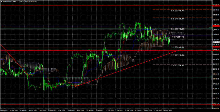 Биткоин на американских горках.ИнстаФорекс - Instaforex, 2 года назад Не успели мы написать вчера, что биткоин рухнул вниз, как он тут же взлетел вверх, а потом снова рухнул вниз. На данный момент одна монета первой криптовалюты в мире стоит 26 300$, но мы по-прежнему не видим причин и оснований для сильного роста. Вчера стало известно, что Комиссия по ценным бумагам и биржам(SEC) выдвинула список из тринадцати обвинений крупнейшей криптовалютной бирже Binance, а уже сегодня стало известно, что начался отток биткоинов(и, соответственно, и других криптовалют с этой самой биржи). Инвесторы не хотят иметь дело с биржей, которая находится под расследованием государственных органов в США и в последствии может быть «забанена» в стране с крупнейшей экономикой. Поэтому падение всего криптовалютного рынка в последние несколько дней абсолютно не удивительно. Многие токены потеряли гораздо больше биткоина, который, можно сказать, отделался легким испугом. Так что же дальше? Во-первых, сегодня Goldman Sachs выпустил пресс-релиз, в котором было четко сказано о сокращении длинных позиций и фиксации прибыли инвесторами в мае. Во-вторых, коррекционный сценарий сохраняется, а фундаментальных факторов, способных спровоцировать рост, пока не наблюдается. В-третьих, уже на следующей неделе ФРС может еще раз повысить ключевую ставку, что само по себе плохо для всех рисковых активов. А биткоин – самый рисковый среди них. В-четвертых, биткоин быстро взлетел на 100%, но, похоже, на основании факторов, которые еще даже не произошли. В частности, это может быть будущее смягчение монетарной политики ФРС, а также халвинг 2024 года. Поэтому мы продолжаем считать, что коррекция продолжится, тем более что уровень 25 211$ и линия тренда на 24-часовом ТФ пока не отработаны. Быки попытались вчера быстро откупить все проданные монеты, но сегодня биткоин опять падает. А это значит, что новые игроки хотят избавиться от монет, предложение растет, а спрос за ним не поспевает. И пусть биткоин упал всего-то на 1,5 тысячи долларов, что не так уж много, но коррекция продолжается уже 2 месяца. Все будет решаться около уровня 24 350$ – 25 211$ и восходящей линии тренда на текущем графике. На 24-часовом таймфрейме биткоин несколько раз пытался преодолеть уровень 29 750$, но неудачно. В итоге криптовалюта начала и продолжает по сей день нисходящую коррекцию. В ближайшее время мы ждем падения к уровням 25 211$ и 24 350$, до которых остается пройти совсем немного. И мы бы не ставили крест на дальнейшем падении криптовалюты. Покупки можно будет рассматривать только при формировании соответствующего сигнала. Например, отскока от 25 211$, 24 350$ или линии тренда. Также большое значение имеет нисходящий канал на 4-часовом ТФ. Материал предоставлен компанией InstaForex - www.instaforex.com |