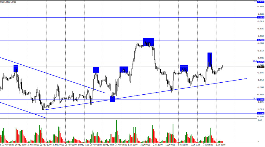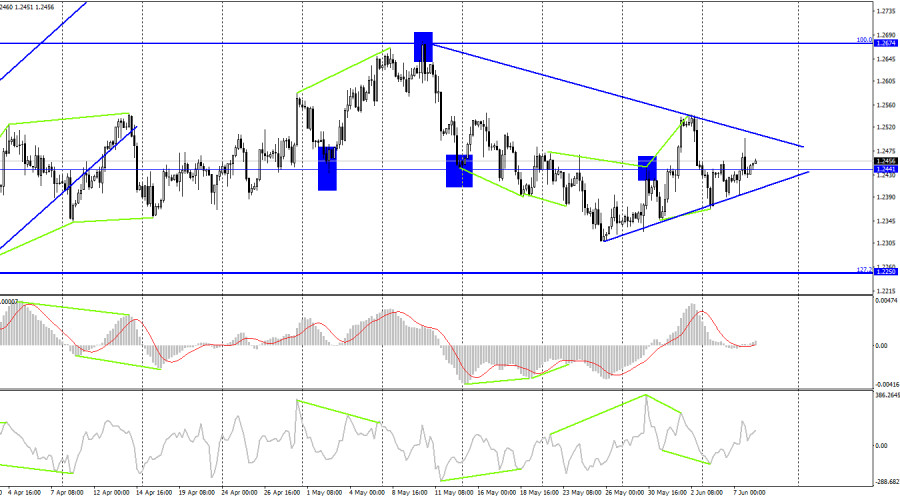 GBP/USD. 8 июня. Британец с трудом удерживает восходящее направлениеИнстаФорекс - Instaforex, 2 года назад Добрый день, уважаемые трейдеры! На часовом графике пара GBP/USD в среду выполнила рост к уровню коррекции 23,6% – 1,2470 и отбой от него. В то же время была добавлена восходящая трендовая линия, которая характеризует текущее настроение трейдеров как «бычье». Некоторое время процесс роста может продолжаться, но мы видим, что быки сейчас не обладают необходимой силой, чтобы британец продолжал расти. Закрепление курса пары под трендовой линией сработает в пользу валюты США и некоторого падения в направлении уровней 1,2342 и 1,2295. Информационный фон отсутствует. Несмотря на то что пара время от времени показывает неплохую волатильность, очень сложно понять, куда она двинется в следующие несколько часов или дней. Котировки очень часто меняют курс движения, а восходящий тренд достаточно слабый. Даже поступающие время от времени новости из США не добавляют ясности в общую картину. Таким образом, отталкиваться трейдеры могут сейчас только от графического анализа или других видов технического анализа. В оставшиеся два дня недели ситуация вряд ли кардинально поменяется. Важных записей в календаре экономических событий практически нет. Похоже, что рынок начинает готовиться уже к следующей неделе, когда ФРС объявит результаты очередного заседания, а в США выйдет очередной отчет по инфляции. Что касается Великобритании, то там сейчас не происходит ничего интересного, а заседание Банка Англии состоится лишь через две недели. На 4-часовом графике пара выполнила разворот в пользу доллара США после образования второй подряд «медвежьей» дивергенции у индикатора CCI. Однако позже была образована также «бычья» дивергенция у индикатора CCI, которая позволила возобновить процесс роста. Также был добавлен треугольник на 4-часовой график, и по прорыву одной из его границ можно будет определить дальнейшее направление движения пары. Отчет Commitments of Traders (COT): Настроение категории трейдеров «Non-commercial» за последнюю отчетную неделю стало чуть более «бычьим». Количество Long-контрактов на руках спекулянтов выросло на 1117 единиц, а количество Short – сократилось на 529. Общее настроение крупных игроков остается полноценным «бычьим» (долгое время оно было «медвежьим»), но количество Long и Short-контрактов сейчас практически равное – 70 тысяч и 57 тысяч соответственно. На мой взгляд у британца есть неплохие перспективы возобновления роста, но информационный фон сейчас не отдает предпочтения ни доллару, ни фунту. Британец рос долгое время, долгое время росла нетто-позиция некоммерческих трейдеров, но все зависит от того, сохранится ли в долгосрочном плане поддержка британской валюты? Я считаю, что в данное время ожидать возобновления роста не стоит. Календарь новостей для США и Великобритании: США – Число первичных заявок на получение пособий по безработице (12-30 UTC). В четверг календарь экономических событий содержит в себе один отчет в США, который вряд ли сильно повлияет на позиции доллара. Влияние информационного фона на настроение трейдеров во второй половине дня будет отсутствовать или очень слабым. Прогноз по GBP/USD и советы трейдерам: Новые продажи британца можно открывать в случае закрытия на часовом графике с целями 1,2342 и 1,2295. Покупки британца возможны при отбое от трендов