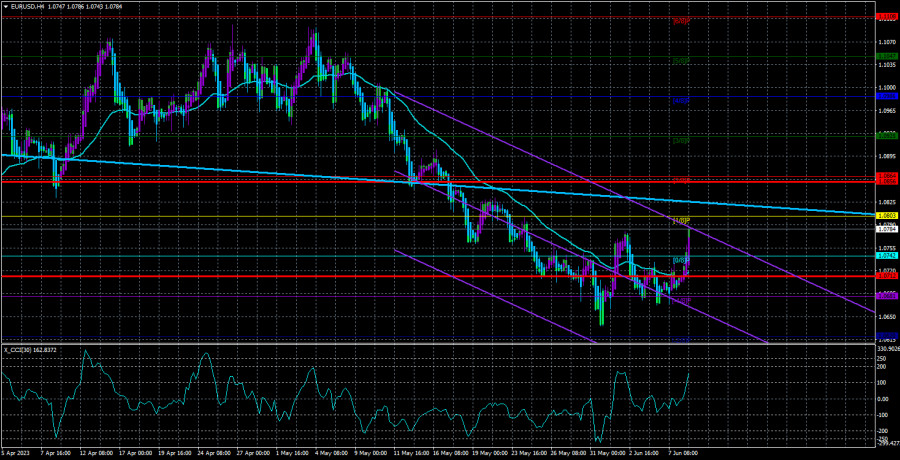 Обзор пары EUR/USD. 9 июня. Европейская экономика потихоньку сваливается в рецессию.ИнстаФорекс - Instaforex, 2 года назад Валютная пара EUR/USD в четверг показала новый виток восходящего движения, хотя никаких фундаментальных оснований для этого не было. Но они сейчас и не требуются. Дело в том, что пара уже больше недели находится в ограниченном ценовом диапазоне. Это не флэт и не «качели», но состояние близкое к ним. Проще говоря, пара не предпринимает попыток начать восходящий тренд или возобновить нисходящий. Все движения в последнюю неделю абсолютно рэндомные и не имеют под собой никаких оснований. В таком режиме пара может торговаться еще сколько угодно времени, так как важных тем и событий сейчас практически нет. Мы считаем, что ключевой причиной роста европейской валюты в последний недели является заход индикатора CCI в область перепроданности, что четко видно на иллюстрации выше. Напомним, что этот индикатор нечасто формирует сигналы, но когда формирует, с вероятностью 90% они сильные и верные. Таким образом, мы можем сейчас наблюдать лишь простую отработку перепроданности пары, которая падала в течение месяца практически безостановочно. В этом случае пара может еще некоторое время идти вверх, например, к уровню 1,0864, а потом должна возобновить падение. Потому что никаких, повторимся – НИКАКИХ оснований для укрепления евровалюты сейчас попросту нет. Рынок, безусловно, всегда может найти причину или повод, но если брать во внимание текущие макроэкономический и фундаментальный фон, то оснований для роста нет, максимум – коррекция. ВВП в первом квартале отрицательный.Чуть выше мы говорили о том, что никаких оснований для роста европейской валюты сейчас нет... Вчера чуть ли не единственным отчетом дня стал ВВП в ЕС в первом квартале в третьей оценке. Трейдеры ждали нулевого прироста, но в реальности экономика сократилась на 0,1% в квартальном выражении. И мы считаем, что это очень плохой знак для евровалюты. Но посмотрите, как отреагировали трейдеры на это известие! Европейская валюта росла весь день! Это все, что нужно знать о логичности движения в данное время. А падение европейской экономики, пусть и малое, означает, что ЕЦБ может быть в ближайшее время гораздо осторожнее в выражениях и заявлениях. Мы уже говорили, что рынок закладывает в текущий курс еще 1-2 повышения ставки, и эти 1-2 повышения уже давно учтены рынком. На большее рассчитывать сейчас не приходится даже без последнего отчета по ВВП. Таким образом, чтобы там не говорили представители монетарного комитета ЕЦБ(а их риторика по большей части остается «ястребиной»), в реальности можно ожидать подъема ставки еще максимум на 0,5% до 4,25%. Это реалистичный прогноз. Естественно, он может поменяться к концу лета. Всех факторов сейчас не учесть. Однако, на текущий момент тоже следует от чего-то отталкиваться. Мы считаем, что рост евровалюты временный и исключительно коррекционный. А раз так, то он закончится в ближайшее время. На 24-часовом ТФ пара может остаться ниже облака Ишимоку, так как сверху ее поджимает линия Сенкоу Спан Б. От этой линии пара может отскочить уже сегодня или в начале следующей недели, что и станет основанием для возобновления нисходящего движения. Средняя волатильность валютной пары евро/доллар за последние 5 торговых дней по состоянию на 9 июня составляет 72 пункта 