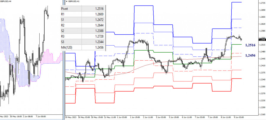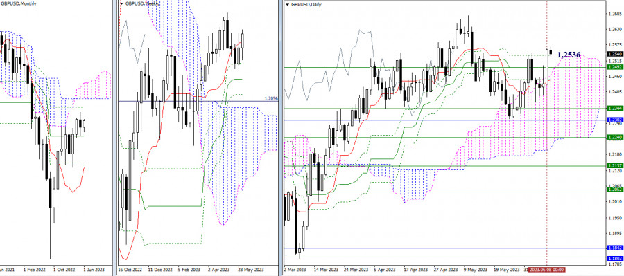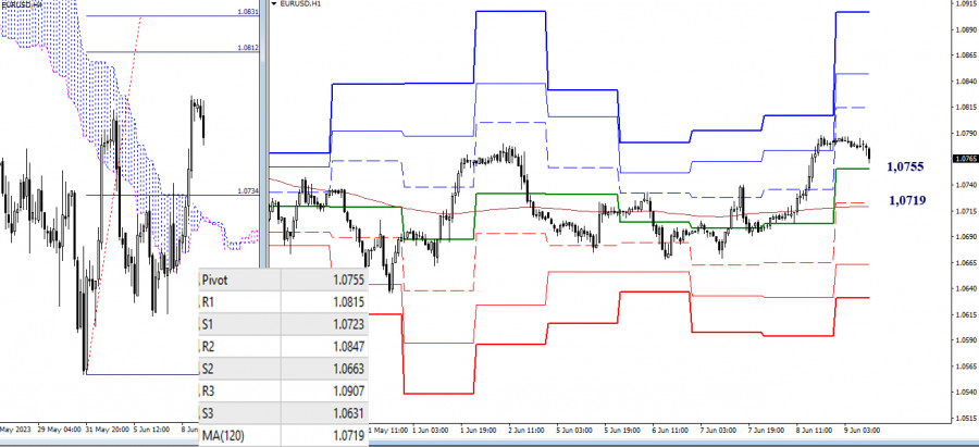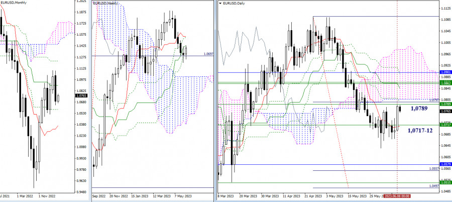 EUR/USD и GBP/USD 9 июня – технический анализ ситуацииИнстаФорекс - Instaforex, 2 года назад EUR/USD Старшие таймфреймы К концу недели активность проявляют игроки на повышение, сумев подняться к сопротивлению недельного среднесрочного тренда (1,0789). Следующим важным этапом в данном направлении является закрепление в дневном облаке (1,0806) и тестирование сопротивления недельного краткосрочного тренда (1,0866). Роль ближайшей поддержки сейчас сохраняется за рубежом 1,0717-12 (заключительный уровень недельного золотого креста Ишимоку + дневной краткосрочный тренд). Н4 – Н1 Основное преимущество в настоящий момент находится на стороне игроков на повышение. Тем не менее наблюдается небольшое коррекционное снижение. Уровнями поддержки для развития коррекции выступают сейчас ключевые уровни младших таймов 1,0755 (центральный Пивот уровень дня) и 1,0719 (недельная долгосрочная тенденция). Следующими поддержками служат классические Пивот уровни, которые сегодня находятся на 1,0663 и 1,0631. Если коррекция завершится, то ориентиры для подъёма внутри дня в сложившейся ситуации можно отметить на 1,0815 – 1,0847 – 1,0907 и цель на пробой облака Н4 (1,0812-31). *** GBP/USD Старшие таймфреймы Игроки на повышение вчера проявили масштабную активность и, оттолкнувшись от поддержек в зоне притяжения дневного краткосрочного тренда (1,2427), взлетели выше непокорённых сопротивлений прошлой недели 1,2492 – 1,2536 (недельный краткосрочный тренд + заключительные уровни дневного мёртвого креста Ишимоку). Закрепление достигнутого результата сделает следующим повышательным ориентиром максимальный экстремум (1,2678). Н4 – Н1 На младших таймах преимущество сейчас принадлежит игрокам на повышение. Ориентирами для продолжения подъёма внутри дня являются классические Пивот уровни (1,2600 – 1,2644 – 1,2728). Если же наметившаяся коррекция получит развитие, то поддержку могут оказать ключевые уровни, расположенные сегодня на 1,2516 (центральный Пивот уровень дня) – 1,2456 (недельная долгосрочная тенденция). Пробой и закрепление ниже способно изменить действующий баланс сил в пользу усиления медвежьих настроений. *** При техническом анализе ситуации использованы: старшие таймфреймы – Ichimoku Kinko Hyo (9.26.52) + уровни Фибо Киджун; младшие таймфреймы – Н1 – Pivot Points (классические) + Moving Avarage 120 (недельная долгосрочная тенденция). Материал предоставлен компанией InstaForex - www.instaforex.com |