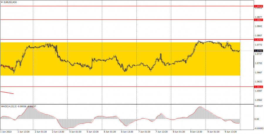 Макроэкономической статистики в понедельник не будет никакой. Даже второстепенных отчетов не запланировано ни в США, ни в Евросоюзе, ни в Великобритании. Таким образом, в течение всего дня трейдерам не на что будет обратить свое внимание. Европейская валюта продолжает находиться в боковом канале или, лучше сказать, в ограниченном ценовом диапазоне. Отскок от уровня 1,0792 был очень неточным, но спровоцировал начало нового витка падения, который может продолжиться на следующей неделе. В отличие от текущей недели, на следующей будет достаточное количество важных событий, поэтому движение заранее предугадать очень сложно, а боковой канал пара может с легкостью покинуть. Фунт в это же время продолжает очередной виток безосновательного роста. Разбор фундаментальных событий: