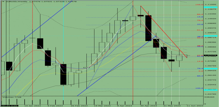 Технический анализ на неделю с 12 по 17 июня. Валютная пара EUR/ USDИнстаФорекс - Instaforex, 2 года назад Трендовый анализ (рис. 1). На этой неделе рынок от уровня 1.0747 (закрытие последней недельной свечи) может продолжить движение вверх, с целью 1.0810 – откатный уровень 38.2% (красная пунктирная линия). При достижении этого уровня, возможно, цена продолжит работу вверх, с целью 1.0865 – откатный уровень 50.0% (красная пунктирная линия). Рис. 1 (недельный график). Комплексный анализ: - индикаторный анализ – вверх; Вывод по комплексному анализу - восходящее движение. Общий итог расчёта свечи валютной пары EUR/ USD по недельному графику: цена на неделе, вероятней всего, будет иметь восходящую тенденцию с отсутствием первой нижней тени у недельной белой свечи (понедельник – вверх) и наличием второй верхней тени (пятница – вниз). На этой неделе рынок от уровня 1.0747 (закрытие последней недельной свечи) может продолжить движение вверх, с целью 1.0810 – откатный уровень 38.2% (красная пунктирная линия). При достижении этого уровня, возможно, цена продолжит работу вверх, с целью 1.0865 – откатный уровень 50.0% (красная пунктирная линия). Альтернативный сценарий: пара, от уровня 1.0747 (закрытие последней недельной свечи) может продолжить движение вверх, с целью 1.0810 – откатный уровень 38.2% (красная пунктирная линия). По достижению этого уровня, возможно, работа вниз, с целью 1.0790 – 13 средняя ЕМА (жёлтая тонкая линия). Материал предоставлен компанией InstaForex - www.instaforex.com |