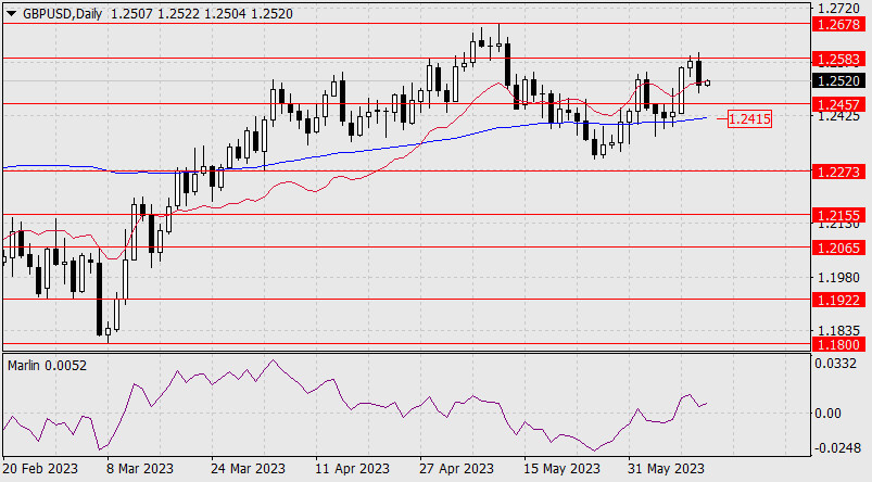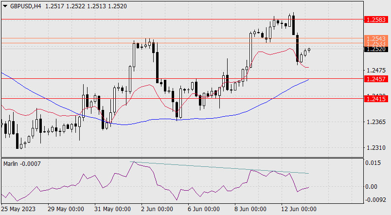 Дивергенция цены с осциллятором сработала, сигнальная линия Марлина уже на отрицательной территории. Цена готова к атаке на 1.2457, осталось дождаться сигнала с внешней стороны (экономической).
