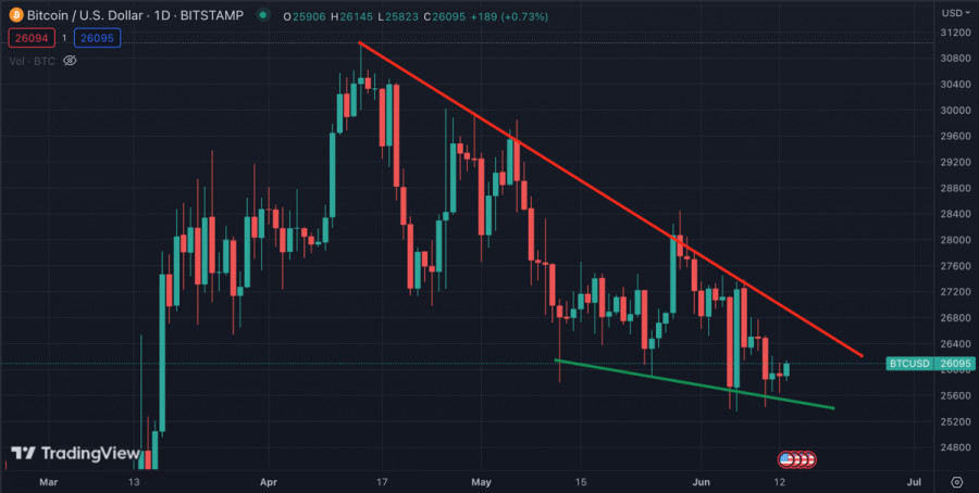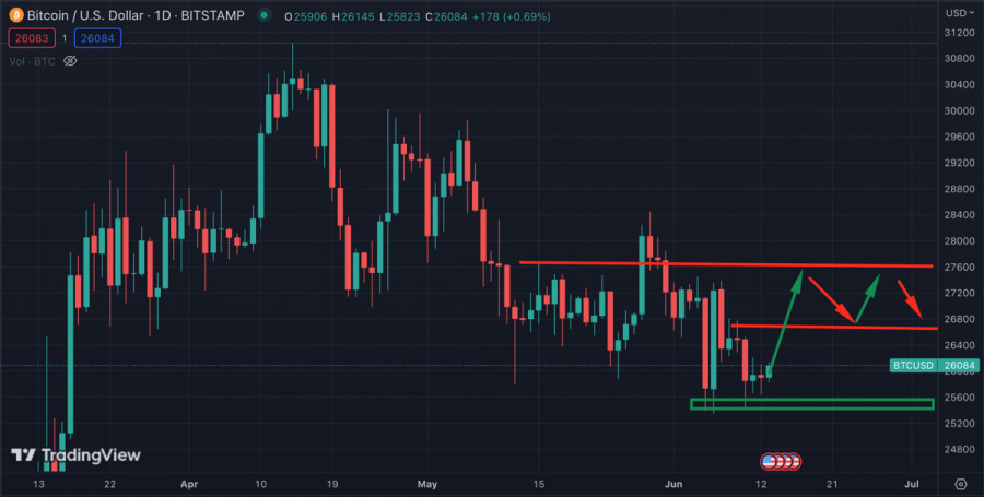 Стоит ли ждать бычий импульс Биткоина в преддверии публикации данных по инфляцииИнстаФорекс - Instaforex, 2 года назад Последние две недели Биткоин находился во власти медведей и обновлял локальные минимумы. В моменте цена актива доходила до уровня $25,3k, неподалеку от основания восходящего тренда. При этом BTC-инвесторы активно накапливали криптовалюту, а число уникальных адресов в сети Bitcoin резко возросло за последние 5 дней. Параллельно с этим процессом мы приближаемся к неделе макроновостей, которые способны оказать существенное влияние на мировую экономику. Криптоинвесторы также внимательно следят за макроданными, а потому уже сегодня можно ожидать первые ценовые реакции ключевых активов рынка. Данные по инфляцииСегодня будут опубликованы данные по инфляции в США, и рыночные ожидания касательно этого события максимально позитивные. Инвесторы ожидают снижение инфляции в годовом исчислении до уровня 4,1% в мае при 4,9% в апреле. И если эти прогнозы оправдаются, то июнь можно назвать переломным месяцем в кризисе, который начался в 2022. Если дефляционное движение по итогам мая составит -0,8%, то почти со стопроцентной уверенностью можно говорить о паузе в повышении ставки от ФРС. Это, в свою очередь, вселит надежду в рынки и спровоцирует локальный бычий тренд, который заденет и криптовалюты. Также это означает значительное увеличение объемов ликвидности на финансовых рынках и восстановление мировой экономики. Начиная с 2022 Биткоин демонстрирует высокий уровень зависимости от данных по ИПЦ и политики ФРС. Пауза в повышении ставки и сильное дефляционное движение способны увеличить интерес к высокорисковым активам, однако это произойдет в среднесрочной перспективе. Анализ БиткоинаВ краткосрочной перспективе позитивные данные по уровню инфляции в США способны спровоцировать импульсное движение цены. Ключевой целью для быков станет закрепление выше уровня $26,6k и возвращение в диапазон колебаний $26,6k-$27,5k. Впоследствии это поможет BTC развить восходящее движение до $28k. Также важно отметить, что краткосрочные перспективы Биткоина станут понятны по мере развития восходящего импульса. Если на экваторе восходящего рывка мы будем наблюдать растущие объемы, то это станет бычьим сигналом, указывающим на перспективы бычьего движения уже в среднесрочной перспективе. Технический анализ BTCUSDОтметка $26,6k является ключевой целью для быков при должной реализации восходящего импульса. Помимо возвращения в диапазон $26,6k-$27,5k важной причиной пробоя данного уровня является наличие здесь линии нисходящего тренда, которая берет свое начало от ценового максимума на $31k в середине апреля. Поэтому восходящее движение и закрепление BTC выше $26,6k, и дальнейшее движение к $27k изменят среднесрочный тренд на бычий. По состоянию на 11:00 мы наблюдаем небольшой рост волатильности и ончейн-метрик. Технические индикаторы демонстрируют растущие объемы покупок, что указывает на позитивные ожидания рынка. ИтогиУровень $26,6k – ключевая цель для быков в краткосрочной перспективе. Успешный пробой данного рубежа изменит среднесрочную картину происходящего на крипторынке и позволит быкам перехватить инициативу. Однако это может произойти лишь в случае мощного дефляционного движения. Материал предоставлен компанией InstaForex - www.instaforex.com |