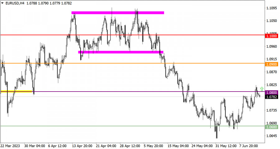 Учимся и анализируем, торговый план для начинающих трейдеров EUR/USD и GBP/USD 14.06.23ИнстаФорекс - Instaforex, 2 года назад Детали экономического календаря от 13 июня Годовая инфляция в США замедлилась до минимального с марта 2021 года уровня. Индекс потребительских цен снизился до 4%, ниже прогнозируемых 4.1%. Столь оптимистичные данные, вероятно, приведут к паузе в цикле повышения процентной ставки ФРС. Доллар США реагирует на данные локальным ослаблением стоимости по отношению к основным конкурентам. Разбор торговых графиков от 13 июняКурс евро по отношению к доллару США продемонстрировал стремительный восходящий цикл и временно превысил уровень 1.0800. Пробой этого уровня свидетельствует о сильном интересе покупателей продолжить рост, несмотря на откат после первоначального пробоя. Фунт стерлингов в паре с долларом США не только восстановился после начала недельного падения, но и обновил локальный максимум среднесрочного восходящего тренда. Котировка поднялась выше значения 1.2600, что указывает на практически полное восстановление цены относительно коррекционного периода в мае. Экономический календарь на 14 июня