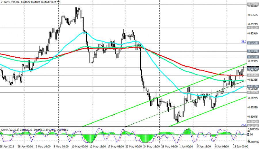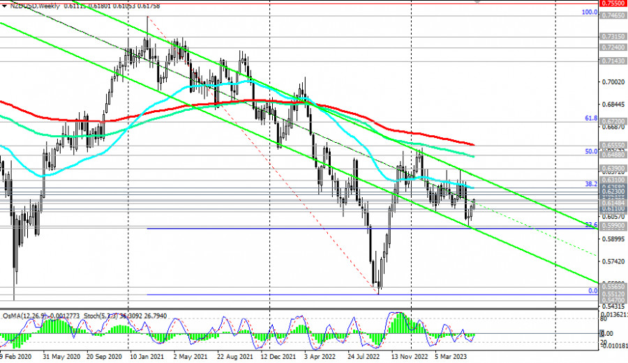 NZD/USD: сценарии динамики на 14.06.2023ИнстаФорекс - Instaforex, 2 года назад Как мы отметили мы в нашем сегодняшнем Фундаментальном анализе, NZD/USD развивает с начала месяца восходящую динамику, двигаясь к зоне баланса и ключевым уровням сопротивления 0.6230 (ЕМА200 на дневном графике), 0.6258 (ЕМА50 на недельном графике и уровень Фибоначчи 38,2% в волне снижения пары с уровня 0.7465 в феврале 2021 года к уровню 0.5510, достигнутому в октябре 2022 года). Успешный пробой уровня сопротивления 0.6170 (ЕМА50 на дневном графике), который цена преодолевает в настоящий момент, станет в этом случае подтверждающим сигналом нашего предположения. Пробой же уровня сопротивления 0.6258 может спровоцировать дальнейший рост в сторону ключевых уровней сопротивления 0.6488 (ЕМА144 на недельном графике и уровень Фибоначчи 50%), 0.6555 (ЕМА200 на недельном графике). Их пробой, в свою очередь, выведет NZD/USD в зону долгосрочного бычьего рынка, хотя для прорыва в зону глобального бычьего рынка цене необходимо преодолеть уровень сопротивления 0.6720 (ЕМА200 на месячном графике и уровень Фибоначчи 61,8%). В альтернативном сценарии NZD/USD возобновит снижение. Пробой уровня поддержки 0.6148 (ЕМА200 на 4-часовом графике) станет первым сигналом для возобновления коротких позиций, а пробой важного краткосрочного уровня поддержки 0.6110 (ЕМА200 на 1-часовом графике) – подтверждающим. Среднесрочная цель снижения – минимум года 0.5990, отметка 0.5975 (уровень Фибоначчи 23,6%), 0.5900 (нижняя линия нисходящего канала на дневном графике). *) об особенностях торговли NZD см. в статьях