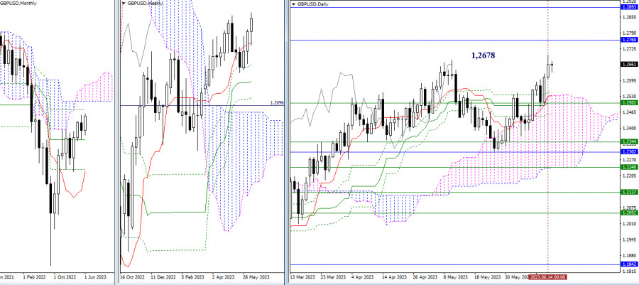 EUR/USD и GBP/USD 15 июня – технический анализ ситуацииИнстаФорекс - Instaforex, 2 года назад EUR/USD Старшие таймфреймы Игроки на повышение вчера продолжили подъём и протестировали сопротивление недельных уровней (1,0862-66). Закрепление выше позволит направить внимание на подъём к таким важным ориентирам как месячный среднесрочный тренд (1,0901) и верхняя граница дневного облака (1,0991). Зона притяжения и поддержек в настоящий момент формируется объединением усилий дневных уровней и недельного среднесрочного тренда на рубежах 1,0806 – 1,0789 – 1,0766. Н4 – Н1 Вчерашняя нисходящая коррекция завершилась новой бычьей активностью, которая позволила игрокам на повышение обновить максимум и продолжить восходящий тренд. Быкам оказалось мало цели Н4 и они устремились к R2 и недельным ориентирам в район 1,0862-66. В настоящий момент мы вновь наблюдаем работу в коррекционной зоне. Повышательными ориентирами от младших таймов служат сопротивления классических Пивот уровней, сегодня они находятся на 1,0872 – 1,0914 – 1,0962. Ключевые уровни младших таймов сейчас оказывают притяжение и поддержку, располагаясь в диапазоне 1,0824 (центральный Пивот уровень) – 1,0783 (недельная долгосрочная тенденция). Пробой ключевых уровней изменит баланс сил в пользу усиления медвежьих настроений, а дополнительными понижательными ориентирами внутри дня станут поддержки классических Пивот уровней (1,0734 – 1,0692). *** GBP/USD Старшие таймфреймы Игроки на повышение вчера продолжили подъём и обновили максимальный экстремум мая (1,2678). В результате теперь перед игроками на повышение лежат сопротивления самого старшего таймфрейма – месячные уровни 1,2760 и 1,2893. Ближайшей зоной поддержек в сложившейся ситуации является скопление дневных уровней, которое усиливает недельный краткосрочный тренд (1,2502). Н4 – Н1 В настоящий момент на младших таймах ведётся работа в зоне коррекции, где притяжение и поддержку оказывают ключевые уровни – центральный Пивот уровень дня (1,2652) и недельная долгосрочная тенденция (1,2581). Если коррекция завершится, и подъём будет продолжен, то ориентирами внутри дня будут выступать сопротивления классических Пивот уровней (1,2705 – 1,2750 – 1,2803). Если же коррекция приведёт к пробою недельной долгосрочной тенденции (1,2581), то следующими понижательными ориентирами внутри дня будут служить поддержки классических Пивот уровней (1,2554 – 1,2509). *** При техническом анализе ситуации использованы: старшие таймфреймы – Ichimoku Kinko Hyo (9.26.52) + уровни Фибо Киджун; младшие таймфреймы – Н1 – Pivot Points (классические) + Moving Avarage 120 (недельная долгосрочная тенденция). Материал предоставлен компанией InstaForex - www.instaforex.com |