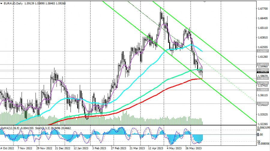 EUR/AUD: перспективы монетарных политик ЕЦБ и РБА являются ключевымиИнстаФорекс - Instaforex, 2 года назад Как мы отметили в нашем предыдущем обзоре EUR/USD: накануне заседаний ФРС и ЕЦБ сегодня внимание участников рынка будет приковано к публикации в 12:15 (GMT) решения ЕЦБ по ставкам. Ожидается, что по итогам данного заседания ключевая процентная ставка и ставка ЕЦБ по депозитам для коммерческих банков будут повышены на 0,25% (до 4,00% и 3,50% соответственно). Накануне этого события евро укрепляется на валютном рынке, в то время как пара EUR/AUD, наоборот, снижается. Стоит отметить, однако, что австралийский доллар укрепляется по всему рынку после прошедшего в начале этого месяца заседания РБА, по итогам которого руководители австралийского ЦБ неожиданно для рынка повысили процентную ставку на 25 базисных пункта, до 4,10%. В сопутствующем заявлении они отметили, что приняли решение на фоне сохраняющегося давления инфляции, которая остаётся на недопустимо высоком уровне 7,0% (целевой уровень РБА составляет 2,0% - 3,0%), не исключив также возможности дальнейшего повышения процентной ставки, если тому будет соответствовать экономическая ситуация, а экономическому росту и благосостоянию граждан не будет нанесен значительный урон. Стоит также отметить, что австралийский доллар получил поддержку со стороны опубликованной недавно макроэкономической статистики из Австралии. Так, индекс деловой активности PMI в сфере услуг от Commonwealth Bank в мае поднялся до 52,1 (против предыдущего значения 51,8 и нейтрального прогноза), а данные по занятости, опубликованные сегодня Австралийским бюро статистики, указали на рост занятости в стране на +75,9 тыс. (против прогноза о росте на +17,5 тыс. и предыдущего значения -4,3 тыс.) и на снижение безработицы на 0,1% (против предыдущего значения 3,7% при нейтральном прогнозе). Отметим, что рост занятости населения положительно сказывается на потребительских расходах, что стимулирует экономический рост. Что же касается евро и ожиданий относительно дальнейших действий ЕЦБ, то, как мы уже отметили выше, ключевая процентная ставка и ставка ЕЦБ по депозитам для коммерческих банков будут повышены на 0,25%. Многие экономисты считают, что это повышение ставок уже учтено в ценах и вряд ли придаст евро сильный бычий импульс. В пятницу будет опубликована финальная оценка инфляции в еврозоне (подробнее см. в Важнейшие экономические события недели 12.06.2023 – 18.06.2023). И здесь ожидается, что годовой индекс потребительских цен CPI снизился в мае до 6,1% с 7,0% в апреле, а годовой базовый CPI (в базовом индексе потребительских цен продовольствие и энергия исключены при расчёте для более точной оценки) – до 5,3% с 5,6% месяцем ранее. Если в сопутствующем заявлении руководители ЕЦБ признают ослабление инфляционного давления с пересмотром прогнозов в сторону понижения, то это может оказать сильное медвежье давление на евро. В 12:45 начнётся пресс-конференция ЕЦБ. Если его глава Кристин Лагард займёт нейтральную позицию относительно перспектив монетарной политики, то это тоже вряд ли окажет евро поддержку. Таким образом, для развития сколь-нибудь существенного роста евро, руководители ЕЦБ должны занять явно ястребиную позицию в отношении кредитно-денежной политики банка с перспективой роста ключевой ставки до 4,0% и выше. Что же касается пары EUR/AUD, то с технической точки зрения, несмотр
