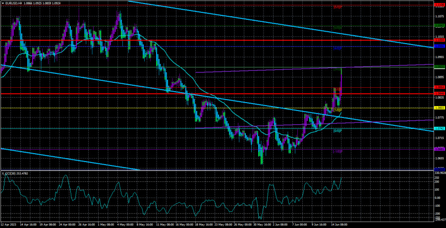 Обзор пары EUR/USD. 16 июня. Результаты заседания ЕЦБ: без сюрпризов.ИнстаФорекс - Instaforex, 2 года назад Валютная пара EUR/USD большую часть среды торговалась с повышением, хоть и не с самой высокой волатильностью. Когда стало известно о паузе ФРС и намеках Джерома Пауэлла на еще два повышения ставки в 2023 году, доллар резко, но слабо укрепился, а к утру четверга уже возобновил рост, который продолжался большую часть дня. В целом мы не можем сказать, что рынок как-то странно отреагировал на заседание ФРС и выступление Пауэлла, но мы все же считаем, что доллар мог показать более сильное укрепление. Здесь сразу стоит отметить, что евро и фунт сейчас торгуются по-разному. Фунт только вчера обновил свой последний локальный пик в долгосрочном плане, а евровалюта – просто корректируется против нисходящей тенденции, и готова в любой момент возобновить падение. Несмотря на то, что ЕЦБ уже повысил ставку еще раз, а Банк Англии может это сделать лишь на следующей неделе и в последний раз, евровалюта все равно растет очень слабо(что абсолютно логично), а фунт – сильно(что абсолютно нелогично). Поэтому евровалюта сейчас выглядит гораздо более привлекательно для торговли, нежели фунт. Отметим, что вчера было опубликовано много различной макроэкономической статистики в Евросоюзе и США. Здесь и промышленное производство в обоих странах, и розничные продажи за океаном, и заявки на пособия по безработице там же, и другие. Но все эти отчеты находились в тени заседаний ЕЦБ и ФРС. Так как пара несколько раз меняла направление движения в течение дня, сказать точно, на какие данные рынок среагировал, а на какие нет, очень сложно. Мы всегда призываем избегать торговли в такие дни или, по крайней мере, быть очень осторожными. Как видим, не зря. На 24-часовом ТФ пара все-таки закрепилась внутри облака Ишимоку, что дает ей возможность продолжать рост. Правда, теперь еще нужно преодолеть линию Киджун-сен, которая тоже является сильной, но констатировать сейчас можно одно: мы в очередной раз не увидели в долгосрочном плане ощутимой коррекции. ЕЦБ повысил все три ставки в 8-й раз подряд.Как мы и говорили во вчерашней статье, от Европейского регулятора нет смысла ожидать сюрпризов. Ставки прогнозируемо выросли еще на 0,25%, и это ужесточение может быть предпоследним в цикле. Напомним, что после того, как центральный банк замедляет темпы ужесточения до минимальных, следует ожидать еще трех повышений. Безусловно, их может быть и больше, но в случае с ЕЦБ ожидать роста ставки до 5 или 5,5% не приходится. Мы уже не раз говорили почему, не будем повторяться. Более интересно другое. По обновленным прогнозам по инфляции, ЕЦБ ожидает 5,4% в текущем году, 3% - в 2024 году и 2,2% в 2025 году. Таким образом, даже через 2,5 года индекс потребительских цен вряд ли вернется к целевому значению. Если бы ЕЦБ был настроен повышать ставки «до победного конца», как ФРС, неужели прогнозы по инфляции были такими слабыми? Мы считаем, что только по прогнозам ЕЦБ можно понять, что он намерен повысить ставку еще один раз. Тем более, что в 2007-2008 годах, во времена ипотечного кризиса, ставка ЕЦБ выросла как раз 4,25%. Это значение и на этот раз может быть «конечной остановкой». Также ЕЦБ опубликовал обновленные и пониженные прогнозы по экономическому росту. Согласно им, в 2023 году стоит ожидать 0,9% роста ВВП, а в следующем году – 1,1%. Так 
