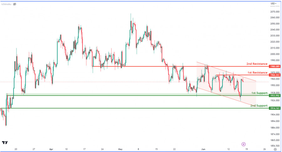 График пары XAU/USD указывает на наличие медвежьего импульса в рамках нисходящего канала, что указывает на преобладание нисходящего тренда. Существует вероятность медвежьей реакции на первом уровне сопротивления 1 966,26, что приведет к развороту цены к первому уровню поддержки 1 933,95. Уровень 1 914,16 оказывает дополнительную поддержку паре, открывая значительные возможности для совершения покупок. Уровни сопротивления 1 966,26 и 1 980,08 являются препятствием на пути восходящего движения. Отслеживание этих уровней позволит лучше понять торговую ситуацию на рынке XAU/USD.
