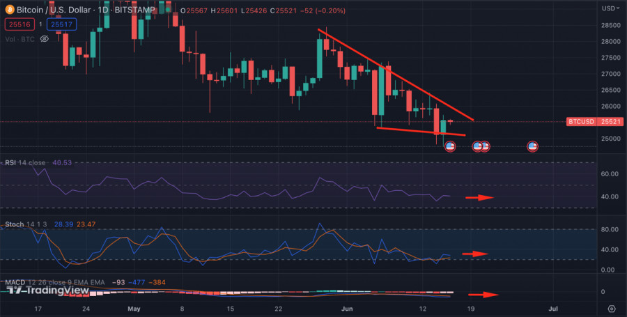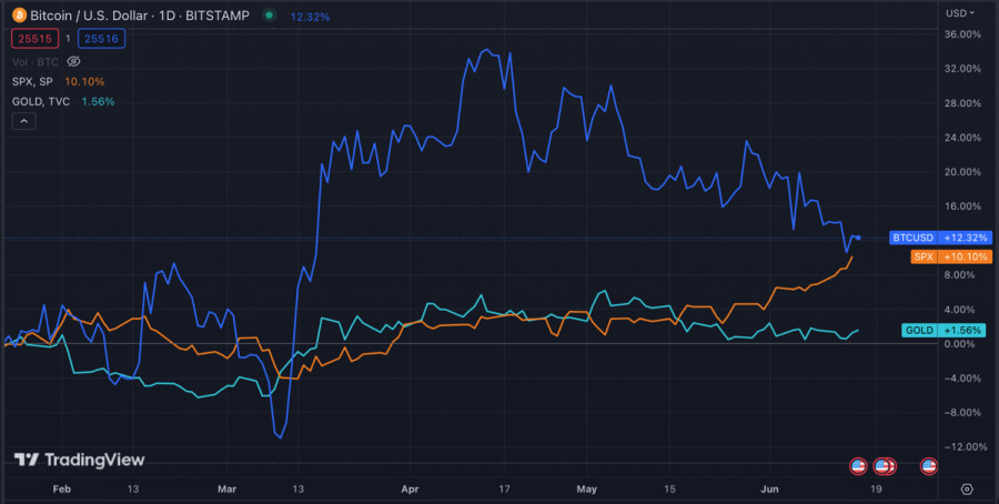 Рынок криптовалют и Биткоин теряют инвесторов и капитализацию: что будет дальше?ИнстаФорекс - Instaforex, 2 года назад За последние три месяца активность на криптовалютном рынке значительно упала. После достижения BTC ценового максимума на отметке $31k, интерес к цифровым активам начал угасать. В результате по состоянию на 16 июня объемы торгов на рынке Биткоина едва достигают $15 миллиардов. Несмотря на это общая капитализация крипто рынка уверенно держится вблизи отметки $1 триллион. Однако основная проблема заключается в том, что большая часть объемов цифровых активов находятся в пассивном состоянии на хранении на децентрализованных или холодных кошельках пользователей. Как итог на ценовое движение BTC и других активов влияет небольшая плеяда инвесторов. Bitcoin теряет позицииФундаментальные события и новости также не в состоянии повлиять на ценовой тренд Биткоина. Ярким примером этого является усугубление нисходящих тенденций на крипто рынке при позитивных данных по инфляции, и действий ФРС. BTC совершил медвежий пробой $26k за счет низкой торговой активности и пессимистичных настроений на рынке криптовалют. Останавливаясь на рыночном сентименте, стоит отметить, самые негативные ожидания касательно будущего крипто рынка с марта 2020 года. Во многом именно негативные настроения сказываются на доминации медведей и низких бычьих объемах, которых едва хватает для защиты ключевых уровней поддержки. Ситуация значительно усугубилась за последние 1,5 месяца, когда SEC сделала несколько громких заявлений и приравняла крипто активы из топ-15 к ценным бумагам. Вдобавок к этому регулятор начал судебное преследование крупнейших на территории США крипто бирж. А как известно, именно в Штатах находился весомый процент крипто быков. Итогом всего вышеизложенного стала полная потеря корреляции BTC и ключевого фондового индекса S&P 500, который продолжает демонстрировать бычью устойчивость. Во многом благодаря тому, что крипто инвесторы переместились на фондовый рынок, BTC и другие активы не могут продемонстрировать вменяемые результаты. Несмотря на общие негативные настроения на крипто рынке, фундаментальный интерес к активам не упал. К примеру Black Rock Capital официально подал заявку на спотовый BTC-ETF. Это происходит на фоне значительного увеличения доли Morgan Stanley и Fidelity в акциях MicroStrategy. Это говорит о том, что институционалы ищу альтернативные пути инвестиций в крипто активы.