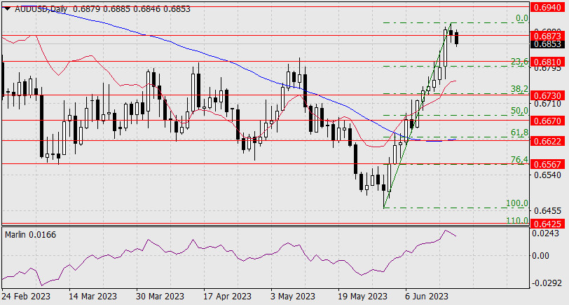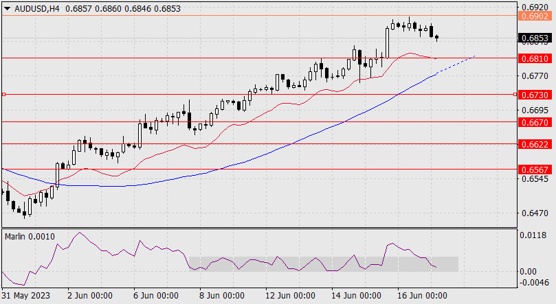 Нарушить такой план сможет преодоление ценой пятничного максимума 0.6902. В этом случае откроется цель 0.6940 (daily).
