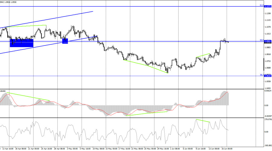 EUR/USD. 19 июня. Инфляция в Еврозоне падает почти до 6%.ИнстаФорекс - Instaforex, 2 года назад Добрый день, уважаемые трейдеры! Пара EUR/USD в пятницу выполнила попытку закрепиться над уровнем 1,0966, но отбой от этого уровня повлек за собой разворот в пользу американской валюты и падение к уровню коррекции 76,4% – 1,0917. Отбой котировок уже от уровня 1,0917 позволит трейдерам рассчитывать на возврат к уровню 1,0966. Закрытие под 1,0917 повысит вероятность продолжения падения в направлении следующего уровня Фибо 61,8% – 1,0843.