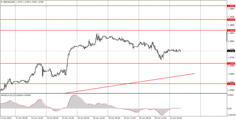 Из фундаментальных событий среды можно выделить выступление Джерома Пауэлла в Конгрессе США. Это будет полугодовой отчет о работе, а текст его выступления может стать известен заранее, как уже случалось ранее. Все будет зависеть для доллара не от самого выступления Пауэлла, а от вопросов, которые ему будут заданы конгрессменами. Здесь могут быть неожиданности и сюрпризы, поэтому по время его выступления требуется повышенная осторожность. Из других событий можно выделить выступления представителей ЕЦБ Изабель Шнабель и Фабио Панетты, а также представителей ФРС – Джефферсона, Гулсби и Мейстер. Чисто теоретически каждый из них может дать рынку новую информацию о настрое регулятора на ближайшие заседания, однако мы не считаем, что реакция на их выступления будет сиюминутная и сильная. Основное внимание сегодня – на выступление Джерома Пауэлла и британскую инфляцию. Общие выводы:В среду единственный важный макроэкономический отчет уже опубликован, и реакция на него пока что слабая. Во второй половине дня мы выделяем выступление Джерома Пауэлла, которое может спровоцировать серьезные движения на рынке. Все остальные события носят второстепенный характер. Основные правила торговой системы:1) Сила сигнала считается по времени, которое потребовалось на формирование сигнала(отскок или преодоление уровня). Чем меньше времени потребовалось, тем сильнее сигнал. 2) Если около какого-либо уровня были открыты две или больше сделки по ложным сигналам, то все последующие сигналы от этого уровня следует игнорировать. 3) Во флэте любая пара может формировать массу ложных сигналов или же не формировать их вовсе. Но в любом случае при первых признаках флэта лучше переставать торговать. 4) Торговые сделки открываются во временной период между началом европейской сессии и до середины американской, когда все сделки должны быть закрыты вручную. 5) На 30-минутном ТФ по сигналам от индикатора MACD можно торговать только при наличие хорошей волатильности и тренда, который подтверждается линией тренда или трендовым каналом. 6) Если два уровня расположены слишком близко друг к другу(от 5 до 15 пунктов), то следует рассматривать их, как область поддержки или сопротивления. Что на графиках:Ценовые уровни поддержки и сопротивления – уровни, которые являются целями при открытии покупок или продаж. Около них можно размещать уровни Take Profit. Красные линии – каналы или линии тренда, которые отображают текущую тенденцию и показывают в какую сторону предпочтительно сейчас торговать. Индикатор MACD(14,22,3) – гистограмма и сигнальная линия – вспомогательный индикатор, который также можно использовать в качестве источника сигналов. Важные выступления и отчеты(всегда содержаться в календаре новостей) могут очень сильно влиять на движение валютной пары. Поэтому во время их выхода торговать следует максимально осторожно или выходить из рынка во избежание резкого разворота цены против предшествующего движения. Начинающим торговать на рынке форекс следует помнить, что каждая сделка не может быть прибыльной. Выработка четкой стратегии и мани-менеджмент являются залогом успеха в трейдинге на длительном промежутке времени. Материал предоставлен компанией InstaForex - www.instaforex.com |