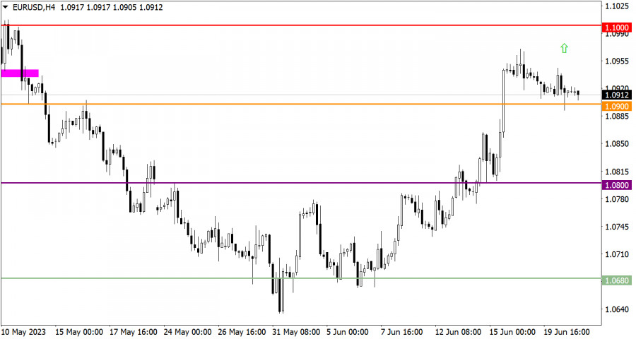 В начале европейской сессии были опубликованы данные о инфляции в Великобритании, которая в мае составила 8,7% в годовом выражении. Это значение осталось на уровне предыдущего месяца, в то время как аналитические агентства прогнозировали замедление роста цен до 8,4%. Учитывая эти данные, существует уверенность, что завтра Банк Англии повысит свою ключевую процентную ставку. На основе этой информации стоимость фунта стерлингов начала расти. Торговый план – EUR/USD 21 июняОжидается, что последующий рост курса евро произойдет при возвращении цены выше уровня 1.0950. В этом случае возможно пролонгация курса евро в область верхнего района психологического уровня 1.1000/1.1050. Однако, для возможности нисходящего сценария и последующего формирования отката, необходимо удерживать цену ниже уровня 1.0900. Торговый план – GBP/USD 21 июняДля возможного формирования отката, котировке необходимо удерживаться ниже уровня 1.2700. В противном случае, возможен последующий рост объема длинных позиций, что может привести к возвращению цены к уровню 1.2850. Что отражено на торговых графиках?