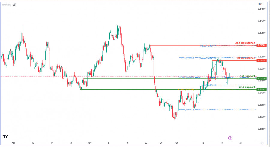 NZD/USD H4: возможен отскок от 1-го уровня поддержкиИнстаФорекс - Instaforex, 2 года назад График NZD/USD показывает слабый бычий импульс с потенциалом отскока от первого уровня поддержки на 0,6160 и движения к первому уровню сопротивления. Уровни поддержки на 0,6160 и 0,6114 важны, поскольку они совпадают с уровнями восстановления Фибоначчи, обеспечивая дополнительную поддержку для потенциального восходящего движения. С другой стороны, уровни сопротивления на 0,6235 и 0,6306 представляют собой сильное препятствие, при этом 0,6306 также совпадает с уровнем расширения Фибоначчи. Материал предоставлен компанией InstaForex - www.instaforex.com |