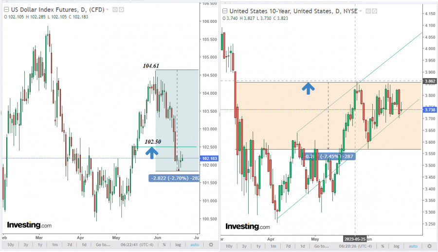 Доллар: покупатели ожидают появления новых драйверовИнстаФорекс - Instaforex, 2 года назад Покупатели доллара ожидают появления новых «бычьих» драйверов после сегодняшних выступлений членов руководства ФРС. Глава ФРС Джером Пауэлл выступит в Конгрессе сегодня и завтра (его выступления начнутся в 14:00 GMT), в том числе освятив перспективы кредитно-денежной политики американского ЦБ (о важных событиях недели см. в Важнейшие экономические события недели 19.06.2023 – 25.06.2023). Сегодня также с комментариями выступят члены Совета управляющих ФРС Лиза Кук, Филипп Джефферсон, Остан Гулсби и Лоретта Мейстер. Вероятно, Пауэлл укажет на возможность возобновления цикла повышения процентной ставки, причем, уже в ходе июльского заседания. Вероятность повышения процентной ставки в июле в настоящий момент оценивается рынком в 74,0%, согласно CME Group. По итогам июньского заседания ФРС, когда процентная ставка осталась на уровне 5,25%, руководители американского ЦБ подтвердили, что необходимо возвратить инфляцию к целевому уровню 2%. При этом, прогноз конечной ставки на конец 2023 года был повышен до 5,6% (с предыдущего прогноза 5,1% в марте), а прогноз ставки на конец 2024 года - до 4,6% с 4,3% ранее. Руководители ФРС считают разумным сделать еще 2 повышения процентной ставки в этом году и ожидают более высоких темпов роста ВВП в 2023 году, снижения уровня безработицы и меньшего прогресса в отношении базовой инфляции, чем они предполагали в марте. Комментируя перспективы монетарной политики после решения ФРС, ее глава Джером Пауэлл подтвердил приверженность руководства ФРС к проведению жесткой политики и к дальнейшему повышению процентной ставки. "Почти все политики (в ФРС) считают целесообразным дальнейшее повышение ставок в этом году", - сказал Пауэлл. Ввиду этих ожиданий, доходность американских гособлигаций сохраняет положительную динамику, оказывая также доллару дополнительную поддержку. На момент публикации данной статьи его индекс DXY (CFD #USDX в терминале МТ4) находился вблизи отметки 102.18. Энергичный прорыв уровня сопротивления 102.50 укажет на серьёзность намерений покупателей доллара, придав ему необходимый бычий импульс. Если же Пауэлл не сможет убедить участников рынка, ограничившись нейтральными заявлениями относительно перспектив монетарной политики ФРС, то снижение доллара возобновится с новой силой. Пробой внутринедельного минимума 101.85 станет сигналом для продавцов доллара. Уровни поддержки: 102.00, 101.50, 101.00, 100.60, 100.00, 99.40, 99.00 Уровни сопротивления: 102.50, 102.84, 103.00, 103.10, 103.50, 103.70, 104.00, 104.65, 105.00, 105.85, 106.00, 107.00, 107.80 *) копирование сигналов в Instaforex - https://www.instaforex.com/ru/forexcopy_system?x=P... **) ПАММ-система в Instaforex - https://www.instaforex.com/ru/pamm_system?x=PKEZZ ***) открыть торговый счет в Instaforex - https://www.instaforex.com/ru/fast_open_live_accou... https://www.instaforex.com/ru/open_live_account?x=... Материал предоставлен компанией InstaForex - www.instaforex.com |