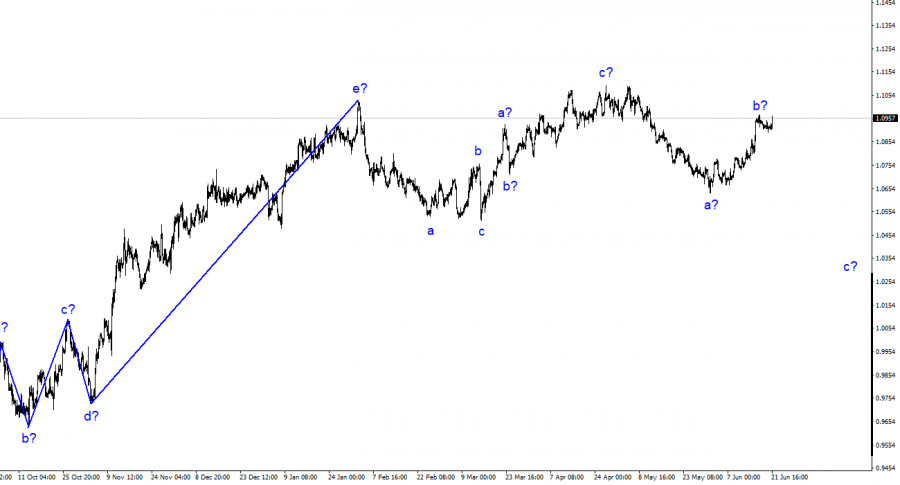 Анализ EUR/USD. 21 июня. ЕЦБ не уверен в повышении ставки осенью.ИнстаФорекс - Instaforex, 2 года назад Волновая разметка 4-часового графика для инструмента Евро/Доллар продолжает оставаться не совсем стандартной, но при этом вполне понятной. Продолжается отход котировок от достигнутых ранее минимумов предположительно в рамках волны b. Весь восходящий участок тренда, берущий свое начало еще 15 марта, может еще теоретически принять более сложную структуру, но в данное время я рассчитываю на построение понижательного участка тренда, который, вероятнее всего, тоже получится трех волновым. В течение последнего времени я регулярно говорил, что жду инструмент около 5-й фигуры, откуда в свое время и началось построение повышательной трехволновки. Пока я от свох слов не отказываюсь. Верхняя точка последнего участка тренда лишь на пару десятков пунктов оказалась выше пика предыдущего повышательного участка. С декабря прошлого года движение инструмента можно считать горизонтальным и я думаю, что такой характер передвижения сохранится. Предполагаемая волна b, которая могла начать свое построение 31 мая, на данный момент имеет вполне убедительный вид и может завершиться в любой момент, так как внутри нее четко просматривается три волны. Более того, она уже приняла несколько удлиненный вид. Питер Казимир сомневается в повышении ставки в сентябре.Курс инструмента Евро/Доллар в среду повысился на 40 базовых пунктов. Все движение дня пришлось на последние несколько часов и однозначно связано с выступлением Джерома Пауэлла в Конгрессе. Однако о нем мы поговорим в следующих статьях. Новостей много, нужно успеть разобрать все. Сегодня один из членов Совета Управляющих ЕЦБ Питер Казимир заявил, что он не уверен в повышении процентной ставки на сентябрьском заседании. Напомню, что на прошлой неделе ставка выросла в восьмой раз подряд, на 25 базисных пунктов. Рынок не сомневается, что по итогам следующего заседания она также возрастет еще на 25 пунктов. А следующее заседание состоится в сентябре и по поводу него присутствуют серьезные сомнения. Хочу также напомнить, что ЕЦБ начал ужесточение позже Банка Англии и ФРС и делал это на первых порах более медленными темпами. Сейчас ставка ЕЦБ ниже ставок американского и британского регулятора. А вместе с этим многие аналитики и я в том числе сильно сомневаются, что ставка вырастет сильно выше 4,25%. Экономика Евросоюзе находится не в лучшем состоянии, чтобы продолжать ужесточение без риска начала рецессии. Казимир также сообщил, что необходимым условием завершения процесса ужесточения является взятие под контроль базовой инфляции, однако он не объяснил, что именно это значит. Также он отметил, что вопрос завершения продаж ценных бумаг с баланса центрального банка сейчас не стоит. Я считаю, что эти заявления Казимира являются тревожным звоночком для европейской валюты. Общие выводы.Исходя из проведенного анализа, я делаю вывод, что продолжается построение нового понижательного участка тренда. Инструмент вновь имеет довольно большой простор для снижения. Я по-прежнему считаю цели в районе 1,0500-1,0600 вполне реальными, и с этими целями я и советую продажи инструмента. Считаю, что сейчас достаточно высока вероятность завершения построения волны b, а индикатор MACD образовал сигнал «вниз». Можно продавать со Стоп Лосс в