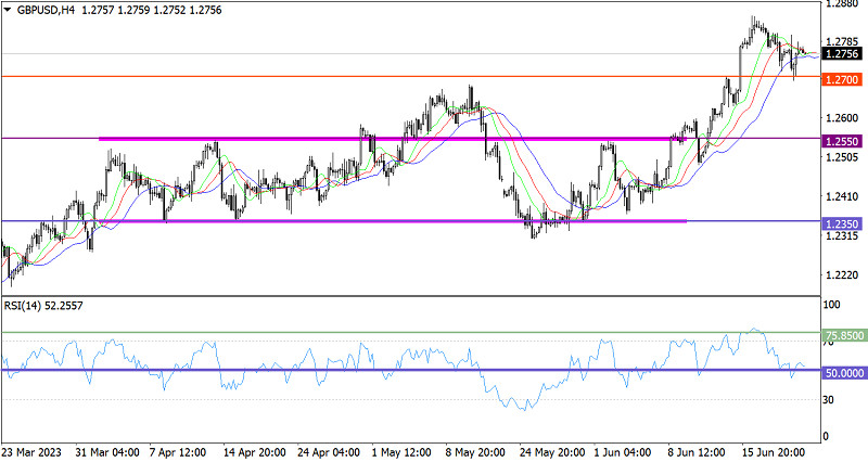 Горящий прогноз по GBP/USD от 22.06.2023ИнстаФорекс - Instaforex, 2 года назад Несмотря на то, что единая европейская валюта вчера продемонстрировала довольно неплохой рост, фунт фактически стоял на месте. И это при том, что инфляция в Великобритании осталась неизменной. А ведь ждали ее замедления с 8,7% до 8,5%. Все дело в сегодняшнем заседании правления Банка Англии. С учетом последних данных по инфляции крайне высока вероятность того, что британский регулятор чуть ли не прямым текстом заявит о намерении и дальше поднимать процентные ставки. Но рисковать раньше времени никто не намерен. Тем более, что на прошлой неделе итоги заседаний Федерального комитета по операциям на открытом рынке, и правления Европейского Центрального Банка оказались мягко говоря несколько неожиданными. Так что осторожность инвесторов вполне обоснована. Таким образом, рынок придет в движение лишь после заседания, и зависеть все будет от его итогов. Фунт стерлингов по отношению доллара США замедлил формирование отката в районе значения 1.2700. Это привело к частичному восстановлению длинных позиций, однако радикальных изменений не наблюдается на торговом графике. RSI H4 на время пересек среднюю линию 50% сверху вниз, но удержаться ниже данного уровня индикатору так и не удалось. Что касается индикатора Alligator H4, то скользящие линии MA имеют переплетению друг с другом. Это указывает на временный застой в цикле восходящего тренда. В дневном периоде скользящие линии MA направлены вверх, что соответствует направлению среднесрочного тренда. Ожидания и перспективы В данной ситуации ключевую роль в последующем движение цены сыграют итоги заседания Банка Англии. Относительно решения регулятора возникнут спекулятивные скачки. Исходя из технического анализа для последующего построения отката, котировке необходимо удержаться ниже уровня 1.2700. В противном случае может возникнуть поэтапный рост объема длинных позиций, что приведет к возвращению цены к уровню 1.2850 и как результат пролонгации восходящего тренда. Комплексный индикаторный анализ в краткосрочном и внутридневном периодах указывают на стадию отката. В среднесрочном периоде индикаторы ориентированы на восходящий тренд. Материал предоставлен компанией InstaForex - www.instaforex.com |