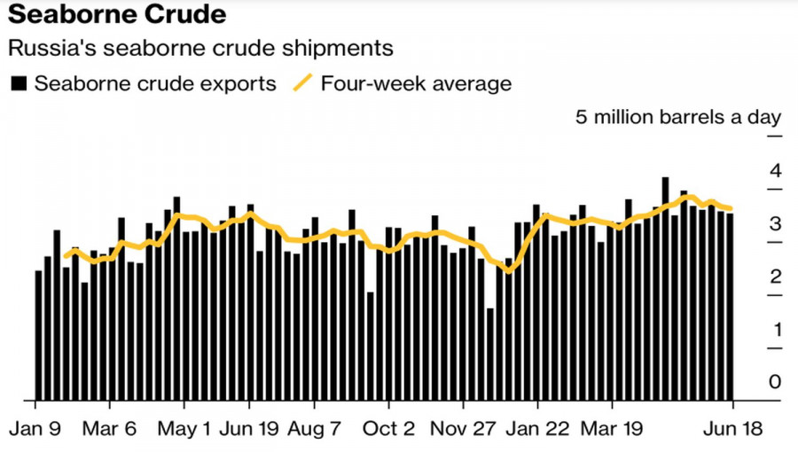 Рублю верить нельзяИнстаФорекс - Instaforex, 2 года назад Когда экономика США сильна, а ФРС заканчивает цикл ужесточения денежно-кредитной политики, создается благоприятная среда для рискованных активов. Растут мировые фондовые индексы и валюты развивающихся стран. Увы, но рубля это уже не касается. Россия настолько изолирована от глобальных финансовых рынков, что курс ее валюты определяется исключительно валютной выручкой от нефти и газа. И здесь Москве похвастать нечем. Стоит ли удивляться ралли USD/RUB? На первый взгляд, все выглядит хорошо. Средние морские перевозки за 4 недели к 18 июня снизились с 3,66 млн б/с до 3,63 млн б/с, однако по сравнению с концом февраля выросли на 260 тыс. б/с. Именно тогда Москва обещала сократить добычу на 500 тыс. б/с. Динамика морских перевозок российской нефти Согласно инсайду Bloomberg, на неделе к 14 июня российские НПЗ перерабатывали 5,49 млн б/с нефти, что на 194 тыс. б/с больше, чем пятидневкой ранее и является максимальным значением показателя с середины апреля. Позвольте, но если вы сокращаете добычу, то и поставки, и нефтепереработка должны падать. А они растут! При этом президент во всеуслышание заявляет, что добыча черного золота увеличивается. Как это согласуется с объявлением о ее сокращении на 500 тыс. б/с? Слабость нефти – результат недоверия инвесторов к новостям из России. И это отражается на сокращении валютной выручки последней: по данным Международного энергетического агентства, в мае она упала на $1,4 млрд, что на 36% меньше, чем годом ранее. При этом средние цены на российское черное золото сократились с более чем $60 до менее чем $55 за баррель. Технически на дневном графике USD/RUB до выполнения целевого ориентира на 161,8% по паттерну AB=CD «быкам» рукой подать. Он расположен вблизи отметки 88,5. При этом обновление июньского минимума, или отбой от динамических поддержек в виде скользящих средних вблизи 82,9, 82,1 и 81, позволит нарастить ранее сформированные длинные позиции по американскому доллару против российского рубля. Материал предоставлен компанией InstaForex - www.instaforex.com |