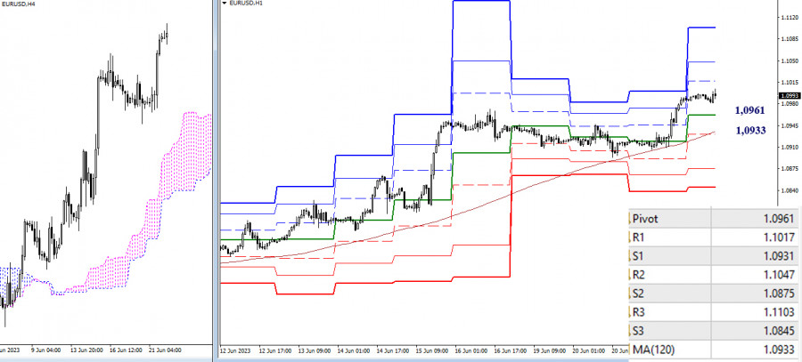 EUR/USD и GBP/USD 22 июня – технический анализ ситуацииИнстаФорекс - Instaforex, 2 года назад EUR/USD Старшие таймфреймы Игроки на повышение завершили коррекционное торможение и обновили максимум, продолжив подъём. При этом они вышли и закрыли вчерашний день выше дневного облака. Если произойдёт закрепление в бычьей зоне относительно дневного облака и подъём будет продолжен, то к повышательным ориентирам можно будет добавить дневную цель на пробой облака. Пока же ближайшей целью является обновление максимального экстремума (1,1096) и восстановление недельного восходящего тренда. Поддержками в сложившихся условиях служат верхняя граница дневного облака (1,0970), месячный среднесрочный тренд (1,0901) и район 1,0862-69, объединивший дневные и недельные уровни. Н4 – Н1 Недельная долгосрочная тенденция вчера справилась с поставленной задачей и удержала рынок от продолжения снижения, сохранив бычье преимущество. Сегодня на младших таймах мы видим развитие восходящего тренда. Ориентирами для подъёма служат классические Пивот уровни (1,1017 – 1,1047 – 1,1103). Ключевые уровни по-прежнему формируют наиболее значимую зону поддержек, отстаивая в сложившейся ситуации интересы игроков на повышение на рубежах 1,0961 (центральный Пивот уровень дня) – 1,0933 (недельная долгосрочная тенденция). *** GBP/USD Старшие таймфреймы Месячный уровень 1,2760 на данном участке сдерживает порывы игроков на понижение, сохраняя достигнутое соперником. При возврате бычьей активности и обновлении максимума текущей коррекции, основное внимание будет направлено на результат тестирования нижней границы месячного облака (1,2893). В случае пробоя 1,2760 от количества медведей встретит поддержка дневного краткосрочного тренда, которая сегодня расположена на 1,2666. Н4 – Н1 На младших таймах игроки на повышение вчера всё же потеряли основное преимущество. Поэтому сегодня они вновь ведут борьбу за обладание ключевыми уровнями, которые сейчас объединяют свои усилия в районе 1,2752 – 1,2775 (центральный Пивот уровень дня + недельная долгосрочная тенденция). Для игроков на повышение сегодня внутри дня ориентирами служат сопротивления классических Пивот уровней (1,2814 – 1,2863 – 1,2925). Для игроков на понижение значение могут иметь поддержки классических Пивот уровней (1,2703 – 1,2641 – 1,2592). *** При техническом анализе ситуации использованы: старшие таймфреймы – Ichimoku Kinko Hyo (9.26.52) + уровни Фибо Киджун; младшие таймфреймы – Н1 – Pivot Points (классические) + Moving Avarage 120 (недельная долгосрочная тенденция). Материал предоставлен компанией InstaForex - www.instaforex.com |