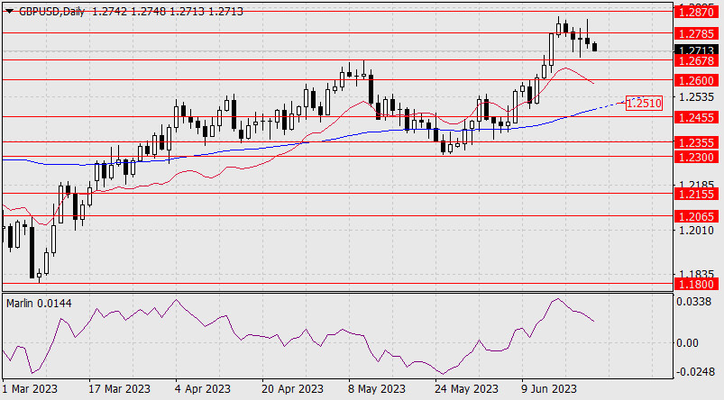 Итак, цена не смогла развить вчера рост, прокол сопротивления 1.2785 оказался ложным третью сессию подряд, теперь цена снижается к ближайшей поддержке 1.2678. Преодоление уровня откроет следующую цель 1.2600.