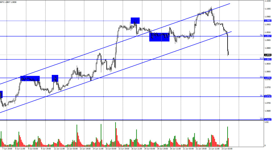 EUR/USD. 23 июня. Евро обвалился под тяжестью деловой активности в промышленностиИнстаФорекс - Instaforex, 2 года назад Добрый день, уважаемые трейдеры! Пара EUR/USD в четверг выполнил разворот в пользу американской валюты и закрепление под уровнем 1,0966, а во вторник – закрепление под восходящим трендовым коридором и уровнем коррекции 76,4% – 1,0917. На текущий момент пара опустилась к уровню Фибо 61,8% – 1,0843. Падение стремительное. Отбой котировок от уровня 1,0843 сработает в пользу валюты ЕС и некоторого роста в направлении 1,0917. Закрытие под 1,0843 повысит вероятность продолжения падения в направлении следующего уровня коррекции 50,0% – 1,0784. Настроение трейдеров изменилось на «медвежье». Вчерашний день для евровалюты был не слишком интересен, так как все внимание рынка было сосредоточено на заседании Банка Англии. И результаты этого заседания вызвали хаос на рынке, а евро находился в тени. Однако в пятницу достаточно посредственные, рядовые отчеты по деловой активности вызвали новый шторм, на этот раз уже по евровалюте (британец практически стоит на месте). Все потому, что индексы деловой активности в производственных секторах Германии и Евросоюза продолжили снижаться и подобрались к уровню 40. В июне индекс в Германии упал до 41, что гораздо ниже ожиданий трейдеров, а в Евросоюзе – до 43,6, что тоже ниже прогнозов. Однако и это еще не все. Индексы деловой активности в сферах услуг тоже снизились, в Германии – с 57,2 до 54,1, а в Евросоюзе – с 55,1 до 52,4. Эти цифры говорят нам, что экономика начала реагировать на повышение процентной ставки ЕЦБ до ограничительного уровня. Если ранее мы наблюдали лишь небольшое падение ВВП, то теперь это падение может увеличиться, а регулятор – отказаться от дальнейшего ужесточения ДКП после июльского заседания. Поэтому евровалюта и падает. На 4-часовом графике пара выполнила разворот в пользу доллара США и закрепление под уровнем коррекции 50,0% – 1,0941. Таким образом, падение котировок может быть продолжено в направлении следующего уровня Фибо 38,2% – 1,0610. Назревающих дивергенций сегодня не наблюдается ни у одного индикатора. Отчет Commitments of Traders (COT):