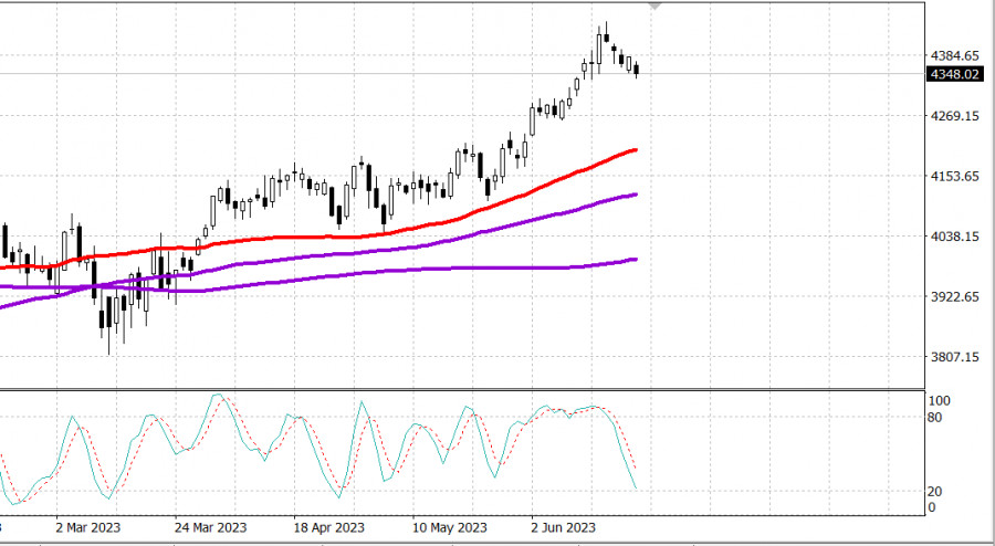Рынок США: коррекция усиливаетсяИнстаФорекс - Instaforex, 2 года назад S&P500 Обзор 26.06 Рынок США: коррекция. Главные индексы США закрыли неделю снижения: Доу -0.7%, NASDAQ -1%, S&P500 -0.8%, S&P500 4350, диапазон 4310 - 4380. Фондовый рынок закрыл неделю на пессимистичной ноте. Продолжающаяся коррекция способствовала слабости, хотя еще одним фактором, способствовавшим этому, были опасения по поводу перспектив глобального роста. Основные индексы достигли своих лучших уровней в начале дневных торгов, когда несколько акций с мегакапитализацией оправились от потерь на открытии, но продажи снова усилились. В итоге все основные индексы закрылись в минусе с потерями от 0,7% до 1,4%. Нисходящие движения последовали за чередой разочаровывающих предварительных июньских производственных индексов PMI для Японии, Германии, Великобритании, еврозоны и США, все из которых оказались ниже 50 (т.е. разделительной линии между ростом и спадом). После вчерашнего повышения ставок центральными банками эти отчеты усилили опасения, что предыдущие повышения ставок могут негативно повлиять на экономическую активность, особенно в производственном секторе. Обеспокоенность ростом проявилась в падении цен на сырьевые товары, росте доллара и снижении доходности казначейских облигаций. Индекс доллара США вырос на 0,5% до 102,91. Фьючерсы на сырую нефть WTI упали на 0,4%, до 69,18 доллара за баррель, а фьючерсы на медь упали на 2,0%, до 3,80 доллара за фунт. Доходность 2-летних облигаций упала на пять базисных пунктов, до 4,75%, а доходность 10-летних облигаций упала на шесть базисных пунктов, до 3,74%. Снижение на фондовом рынке было широким. Спадающие опережали растущие акции числом с разницей более чем 2 к 1 как на NYSE, так и на Nasdaq. 24 из 30 компонентов Dow показали снижение, и все 11 секторов S&P 500 закрылись в минусе. Сектор услуг связи (-0,3%) показал наименьшие потери, чему способствовал рост META . Другие сектора, показавшие относительную силу, включали здравоохранение (-0,3%) и финансовый сектор (-0,4%). Между тем коммунальные услуги (-1,5%) и потребительские товары (-1,1%) оказались в нижней части списка. Объем торгов был чрезвычайно высоким. Nasdaq Composite: +28,9% с начала года