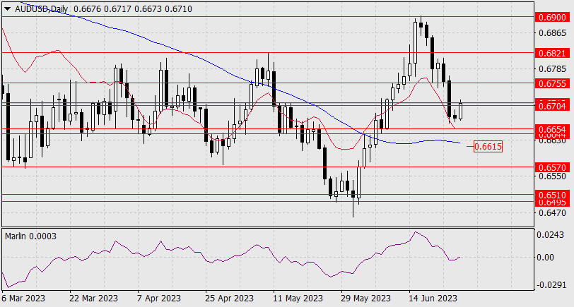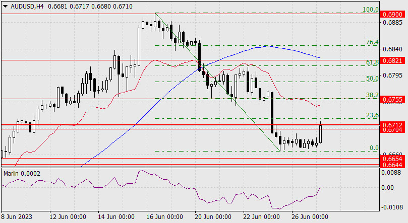 Прогноз по AUD/USD на 27 июня 2023 годаИнстаФорекс - Instaforex, 2 года назад AUD/USD Под целевым диапазоном находится не менее значимая поддержка 0.6615 – индикаторная линия Крузенштерна.