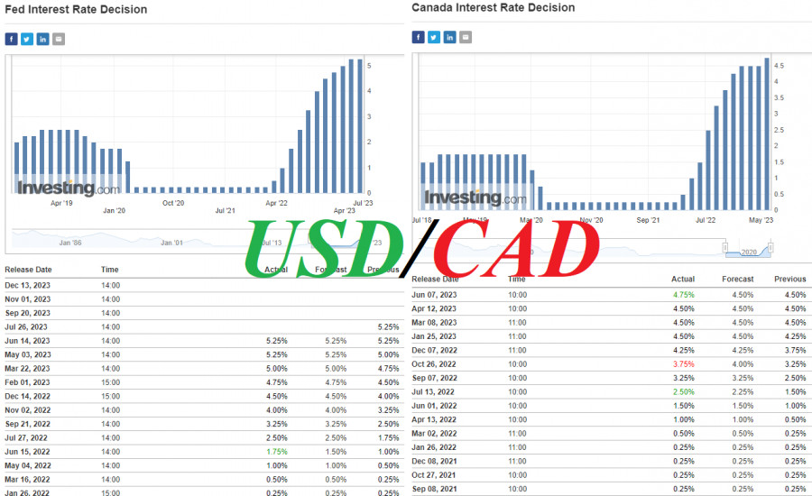 USD/CAD: на фоне итогов июньских заседаний Банка Канады и ФРСИнстаФорекс - Instaforex, 2 года назад По итогам завершившегося в начале месяца заседания, Банк Канады неожиданно для рынка повысил процентную ставку на 0,25% (до 4,75%) после того, как на двух предыдущих заседаниях ставка оставалась на прежнем уровне 4,50%. Это также стало первым в этом году ужесточением монетарной политики канадского ЦБ на фоне опасений по поводу возобновления роста потребительской инфляции. В сопутствующем заявлении руководители Банка Канады выразили опасение, что потребительская инфляция имеет устойчивую тенденцию к существенному превышению целевого уровня 2% (в апреле годовая инфляция в стране составила 4,4%), отметив также 3-месячное превышение показателем порогового уровня 4,0%. Они также заявили, что готовы к сохранению «ястребиного» уклона при планировании параметров монетарной политики, если этого потребует текущая экономическая ситуация. Сегодня в 12:30 (GMT) экономисты и участники рынка получат новую информацию относительно динамики инфляции в Канаде (на потребительские цены приходится большая часть общей инфляции). Ожидается, что потребительская инфляция выросла в мае на +0,5% (после роста на +0,7%, +0,5%, +0,4%, +0,5% в предыдущие месяцы), а годовой CPI – на +3,4% (против +4,4%, +4,3%, +5,2%, +5,9%, + 6,3% в предыдущие месяцы). При этом, базовый CPI (без учета фруктов, овощей, бензина, топливного масла, природного газа, процентов по ипотеке, междугородного транспортного сообщения и табачных изделий) вырос в мае, по прогнозу, на +0,5% (+3,9% в годовом выражении). Как видим, инфляция в стране все еще остается выше целевого уровня Банка Канады в 1% - 3%, но все ближе снижается к верхней границе этого диапазона и отметке 3,0%, а это – предвестник того, что Банк Канады может взять очередную паузу в повышениях, чтобы оценить, так сказать, итоги проделанной работы, чтобы потом перейти к снижению процентной ставки, а это – негативный фактор для CAD. Отметим, что до июньского заседания экономисты считали, что Банк Канады уже завершил цикл ужесточения и мог бы одним из первых среди крупнейших мировых ЦБ начать смягчение денежно-кредитной политики. Что же касается USD/CAD, то сразу после решения Банка Канады повысить процентную ставку пара упала до самого слабого за месяц значения 1.3321 и затем продолжила снижение. При этом, канадский доллар в настоящий момент является одной из самых успешных валют на рынке, укрепляясь как против американского доллара, так и в основных кросс-курсах. Учитывая же тот факт, что на июньском заседании ФРС процентная ставка была сохранена на текущем уровне 5,25%, USD/CAD осталась под медвежьим давлением, продолжая снижаться и на текущий момент, когда она достигла важного долгосрочного уровня поддержки 1.3135. Всего же пара потеряла за этот месяц в цене более 3,1%, достигнув также локального 9-месячного минимума 1.3117. В случае же пробоя ключевого долгосрочного уровня поддержки 1.3075 можно будет говорить уже о сломе долгосрочного бычьего тренда USD/CAD с перспективой дальнейшего снижения пары к стратегическому уровню поддержки 1.2650, отделяющему глобальный бычий рынок от медвежьего (подробнее и альтернативный сценарий см. в USD/CAD: сценарии динамики на 27.06.2023). Похоже, на передний план в динамике USD/CAD вновь выходит монетарная политика центральных банков Канады и США. Что касается последнего, то в среду ожидается н