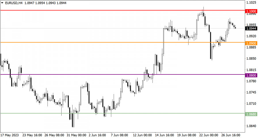 Учимся и анализируем, торговый план для начинающих трейдеров EUR/USD и GBP/USD 28.06.23ИнстаФорекс - Instaforex, 2 года назад Детали экономического календаря от 27 июня Вчера были опубликованы статистические данные о заказах на товары длительного пользования в Соединенных Штатах, которые неожиданно выросли в мае. Прогнозы аналитических агентств предполагали снижение на 1%, но по факту произошел рост на 1,7%. Однако главной новостью, которая стала фактором для спекуляций на финансовых рынках, было выступление главы Европейского Центрального Банка (ЕЦБ) Кристин Лагард. Она заявила, что в ближайшее время маловероятно, чтобы регулятор мог уверенно заявить о достижении пиковых ставок. Она также отметила, что у ЕЦБ есть достаточно оснований для дальнейшего повышения ставок, и, вероятно, это произойдет в июле. Эта информация стала основой для роста курса евро на финансовых рынках.