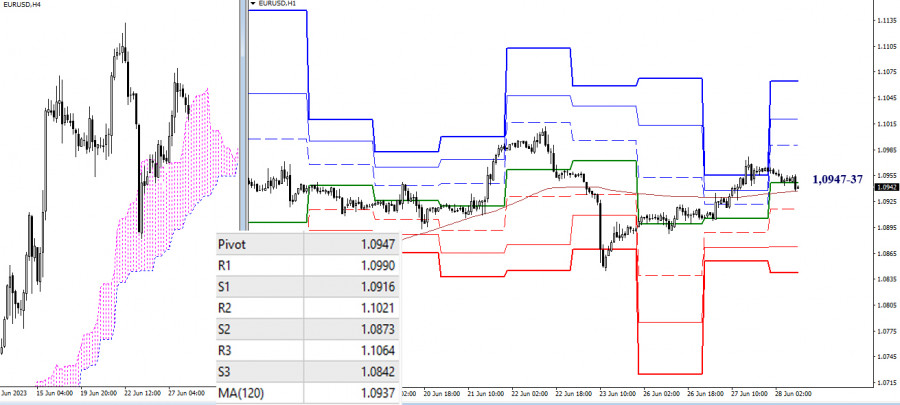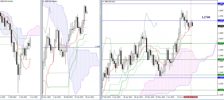 EUR/USD и GBP/USD 28 июня – технический анализ ситуацииИнстаФорекс - Instaforex, 2 года назад EUR/USD Старшие таймфреймы Прошлые сутки игроки на повышение сумели закрыть вне дневного облака Ишимоку. Подтверждение результата и продолжение подъёма позволит направить внимание на сформированную цель на пробой дневного облака, а пока ближайшими повышательными ориентирами продолжают оставаться максимальные экстремумы 1,1012 и 1,1096. Поддержки в сложившейся ситуации сейчас находятся на 1,0928 (дневной краткосрочный тренд) – 1,0901-04 (верхняя граница дневного облака + месячный среднесрочный тренд) – 1,0864-62 (недельные уровни). Н4 – Н1 Игроки на повышение поднялись выше недельной долгосрочной тенденции (1,0937) и имеют перевес сил. Тем не менее, активно продолжать подъём пока не удаётся. Пара вновь тестирует ключевые уровни младших таймфреймов, которые сегодня объединяют свои усилия в районе 1,0947-37 (центральный Пивот уровни + недельная долгосрочная тенденция). Работа выше ключевых уровней говорит о преимуществе игроков на повышение, закрепление ниже будет отдавать шанс и возможность развитию медвежьих настроений. В случае развития активности внутри дня в качестве ориентиров будут служить классические Пивот уровни. Для игроков на повышение будут важны сопротивления 1,0990 – 1,1021 – 1,1064, а для игроков на понижение поддержки 1,0916 – 1,0873 – 1,0842. *** GBP/USD Старшие таймфреймы Вчера игроки на повышение вплотную подошли к месячному сопротивлению (1,2760). Результат взаимодействия будет определять дальнейшее развитие событий. Закрепление выше может поспособствовать продолжению восстановления позиций игроков на повышение. Их ориентирами по-прежнему будут являться максимум текущей дневной коррекции (1,2847) и нижняя граница месячного облака (1,2893). Отбой и продолжение снижения вернут актуальность поддержкам 1,2641 (дневной Фибо Киджун) и 1,2577 (дневной среднесрочный + недельный краткосрочный тренды). Н4 – Н1 На младших таймах в настоящий момент пара в большей мере демонстрирует неопределённость, попеременно закрепляясь то выше, то ниже ключевых уровней, которые сегодня расположены на рубеже 1,2733-35 (центральный Пивот уровень + недельная долгосрочная тенденция). В случае усиления одной из сторон в работу внутри дня включатся классические Пивот уровни поддержки (1,2712 – 1,2680 – 1,2657) и сопротивления (1,2767 – 1,2790 – 1,2822). *** При техническом анализе ситуации использованы: старшие таймфреймы – Ichimoku Kinko Hyo (9.26.52) + уровни Фибо Киджун; младшие таймфреймы – Н1 – Pivot Points (классические) + Moving Avarage 120 (недельная долгосрочная тенденция). Материал предоставлен компанией InstaForex - www.instaforex.com |