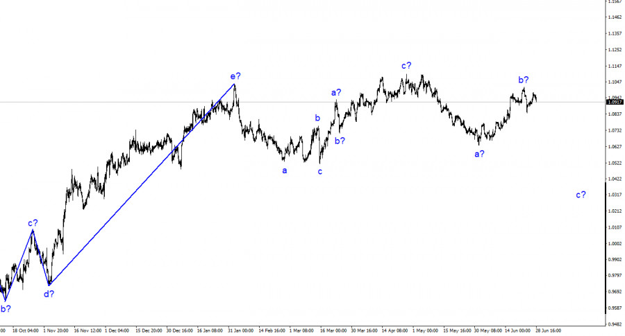 Анализ EUR/USD. 28 июня. Европейская валюта снижается, согласно волновой разметкеИнстаФорекс - Instaforex, 2 года назад Волновая разметка 4-часового графика для инструмента Евро/Доллар продолжает оставаться не совсем стандартной, но при этом вполне понятной. Весь восходящий участок тренда, берущий свое начало еще 15 марта, может еще теоретически принять более сложную структуру, но в данное время я рассчитываю на построение понижательного участка тренда, который, вероятнее всего, тоже получится трехволновым. В течение последнего времени я регулярно говорил, что жду инструмент около 5-й фигуры, откуда в свое время и началось построение повышательной трехволновки. Пока я от своих слов не отказываюсь. Предполагаемая волна b могла завершить свое построение на этой неделе, на что указывает последующий отход котировок от достигнутых пиков. Однако в свете последних событий и особенно движений инструмента GBP/USD я разработал альтернативную волновую разметку, которая предполагает, что весь участок тренда между 15 марта и 26 апреля – это одна волна а. Если это действительно так, то следующая волна – b, а сейчас мы наблюдаем построение повышательной волны с. В этом случае волновые разметки британца и европейца совпадают и все становится на свои места. Если это предположение верно, европеец продолжит движение к 11 фигуре и выше. Выступление Кристин Лагард – ничего новогоКурс инструмента Евро/Доллар в среду снизился на 60 базовых пунктов. Сегодня в португальском городе Синтра, где проходит экономический форум, выступали все три главных чиновника центральных банков, которые интересуют нас больше всего. Речь идет об Эндрю Бейли, Джероме Пауэлле и Кристин Лагард. В этом обзоре мы разберем сказанное Кристин Лагард, но сразу хотим предупредить: ее заявления мало чем отличались от многих предыдущих. Итак, Лагард заявила, что работы у Европейского центрального банка еще очень много, инфляция остается неприемлемо высокой, а в июле ставка с высокой долей вероятности вырастет еще на 25 базисных пунктов. Ничего нового в этих заявлениях нет, рынок и без этого был уверен, что ставка поднимется на следующем заседании. Напомню, что все заявления любого президента центрального банка сводятся к тому, как изменится рыночное ожидание по ставке после него. Следовательно, если Лагард говорит о том, что инфляция все еще слишком высока, а ставка продолжит расти, это означает, что рынок может готовиться к новому ужесточению денежно-кредитной политики. Однако если об этом ужесточении известно было еще до выступления Лагард, то реакции может не быть. А сегодня мы увидели снижение спроса на евровалюту, что выглядит странно (на первый взгляд), учитывая сказанное Лагард, но волновая картина именно такой сценарий и предполагает. Сценарий с усложнением повышательного участка тренда остается пока резервным, а мы все еще можем рассчитывать на построение нисходящей волны с прямо сейчас. Общие выводыИсходя из проведенного анализа, я делаю вывод, что продолжается построение понижательного участка тренда. Инструмент вновь имеет довольно большой простор для снижения. Я по-прежнему считаю цели в районе 1,0500-1,0600 вполне реальными, и с этими целями я и советую продажи инструмента по сигналам индикатора MACD «вниз». Считаю, что сейчас достаточно высока вероятность завершения построения волны