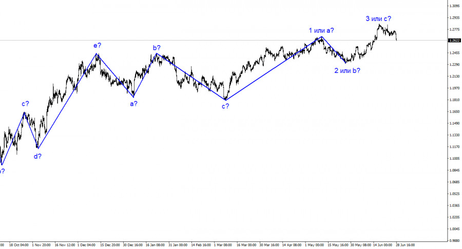 Анализ GBP/USD. 28 июня. Банк Англии готовится к новым ужесточениям.ИнстаФорекс - Instaforex, 2 года назад По инструменту Фунт/Доллар волновая разметка на данный момент поменяла свой внешний вид на более простой и понятный. Вместо сложного коррекционного участка тренда, мы можем увидеть импульсный восходящий или более простой коррекционный. В данное время продолжается построение повышательной волны 3 или с, а британец получает отличную возможность расти вплоть до 30 фигуры. Насколько это оправдано текущим новостным фоном, решать вам. На мой взгляд, у британца нет оснований продолжать повышение до 30 или 35 фигуры(что вполне возможно, если речь идет об импульсном участке тренда), а предполагаемая волна 3 или с может быть уже завершена. Волновая разметка всегда может трансформироваться в более сложную, но я предпочитаю отталкиваться от простых ее проявлений, так как по ним легче работать. По евровалюте ожидается построение нисходящего набора волн, но все же волновая разметка может трансформироваться в аналогичную с фунтом, и тогда все станет на свои места. Отметка 161,8% по Фибоначчи и две неудачных попытки ее прорыва указывают на готовность к снижению. Однако внутри волны 3 или с должна быть пяти волновая структура, что предполагает еще минимум одну волну вверх. Спрос на британца продолжает снижаться.Курс инструмента Фунт/Доллар во вторник снизился на 130 базовых пунктов, а падение началось еще до выступлений Джерома Пауэлла и Эндрю Бейли. Хочу сразу отметить, что сейчас все три центральных банка в той или иной мере сигнализируют о сохранении политики ужесточения. Если Пауэлл и Бейли оба говорят о готовности продолжать повышение ставки, то может ли доллар или фунт считать это своим преимуществом в разрезе одного дня? Я считаю, что нет. Сегодня Пауэлл практически открыто заявил, что следует ожидать еще двух повышения на 25 базисных пунктов. Бейли сообщил, что Банк Англии будет делать все необходимое, чтобы вернуть инфляцию к 2%. То есть риторика глав центральных банков была практически одинаковая. Тем не менее, спрос на фунт сильно снизился в течение дня. Ранее я уже говорил, что волновой анализ нередко обгоняет фундаментальный вид анализа по степени влияния. Две неудачные попытки прорыва уровня 161,8% по Фибоначчи, я еще несколько дней назад называл очень важным моментом, от которого следует отталкиваться. На данный момент мы видим, что снижение инструмента продолжается, а волна 3 или с вполне может быть завершена. Следовательно, сейчас могло начаться построение нового понижательного набора волн. Вернуть инструмент к восходящему участку тренда может неудачная попытка прорыва отметки 1,2615, что приравнивается к 127,2% по Фибоначчи. В этом случае предполагаемая волна 3 или с может принять пяти волновой вид с еще одним тестом отметки 1,2842. Общие выводы.Волновая картина инструмента Фунт/Доллар изменилась и теперь предполагает построение повышательной волны, которая может завершиться в любой момент(или уже завершена). Сейчас можно было бы посоветовать покупки инструмента, но только в случае удачной попытки прорыва отметки 1,2842. Продажи сейчас выглядят более перспективно, и я их советовал с выставлением Стоп Лосс выше отметки 1,2842. Теперь удачная попытка прорыва 1,2615 укажет на готовность рынка к продолжению продаж с целями, находящимися около лоу волны 2 и