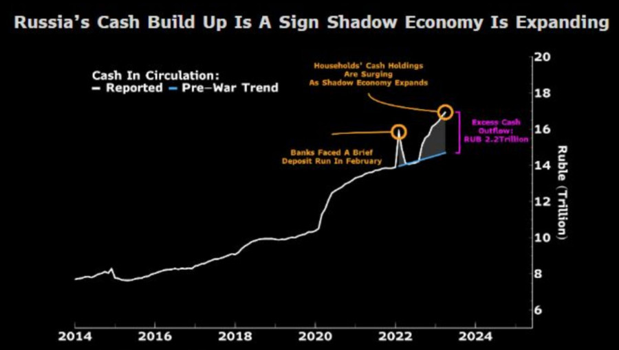 Рубль правду не утаитИнстаФорекс - Instaforex, 2 года назад Все тайное становится явным. Несмотря на то, что мятеж наемников в России закончился также быстро, как и начался, стремительное ралли USDRUB набирает обороты. И пусть некоторые аналитики говорят, что неприятный осадок от геополитических рисков остался, на самом деле причина в другом. Не находящая других ресурсов Москва на полную мощность включила печатный станок, и рост денежной массы ничего хорошего для рубля не несет. Когда наемники ЧВК Вагнера подходили к российской столице, курс доллара в обменных пунктах коммерческих банков перевалил за 100. Наиболее высокий спрос на иностранную валюту предъявляли регионы. Пережившее не один валютный кризис население по традиции скупает доллары как актив-убежище. Одновременно растут и другие проинляфционные риски – покупка товаров народного потребления, которые по сути не нужны. Требуется спасти свои деньги. Люди уходят в наличные даже в условиях высокой инфляции. По данным Bloomberg, объем наличных денег в обращении вырос рекордными темпами с сентября, когда было объявлено о мобилизации. В результате их отток из банков за несколько месяцев составил 2,2 трлн руб. Динамика оттока наличных денег из банков Ничего хорошего этот процесс для экономики РФ не сулит. Он указывает на снижение доверия населения к банковской системе, на усиление беспокойства по поводу будущего среди домохозяйств. Бегство к наличным приводит к разрастанию теневой экономики и к снижению налоговых поступлений в бюджет. Дыры в последнем заставляют правительство на полную мощность включать печатный станок. И восстание наемников эту проблему вскрыло. За каждого убитого в Украине ЧВК Вагнера платит 5 млн руб, что эквивалентно сумме в около $60 тыс. Деньги приходят в мешках, и их не рекомендуется вносить в банки. При этом президент России утверждает, что на частную армию тратятся миллиарды долларов. Уж не печатаются при этом рубли? Правду в мешке не утаишь. Рост денежной массы – не менее «бычий» для пары USDRUB фактор, чем сокращение поступления валютной выручки от нефти и газа. Россия становится все более зависимой от Азии из-за перенаправления сырьевых потоков с Запада на Восток. Доля РФ в поставках черного золота в Индию возросла с 3% до 40%, в Китай – с 8,8% до 14%. При этом удельный вес Саудовской Аравии сократился по обеим направлениям. Не станет ли такая динамика причиной раздора внутри ОПЕК+? И не ускорит ли падение Brent? Если так, то Москву и рубль ждут новые потрясения. Технически на дневном графике USDRUB до таргета в 161,8% по паттерну AB=CD рукой подать. Он соответствует отметке 88. Она же является нашим первым целевым ориентиром по ранее сформированным длинным позициям. Однако, вероятнее всего, «быки» на этом не остановятся. Следующий таргет по модели гармоничной торговли расположен вблизи 224% по Фибоначчи. Речь идет об уровне 94. В связи с этим, достижение отметки 88 – повод для частичной фиксации прибыли. В дальнейшем будем использовать откаты для наращивания лонгов. Материал предоставлен компанией InstaForex - www.instaforex.com |